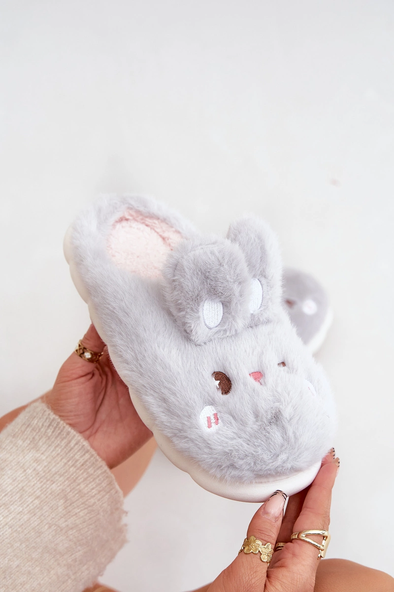 Futrzane Kapcie Z Motywem Króliczka Jasnoszare Natasha