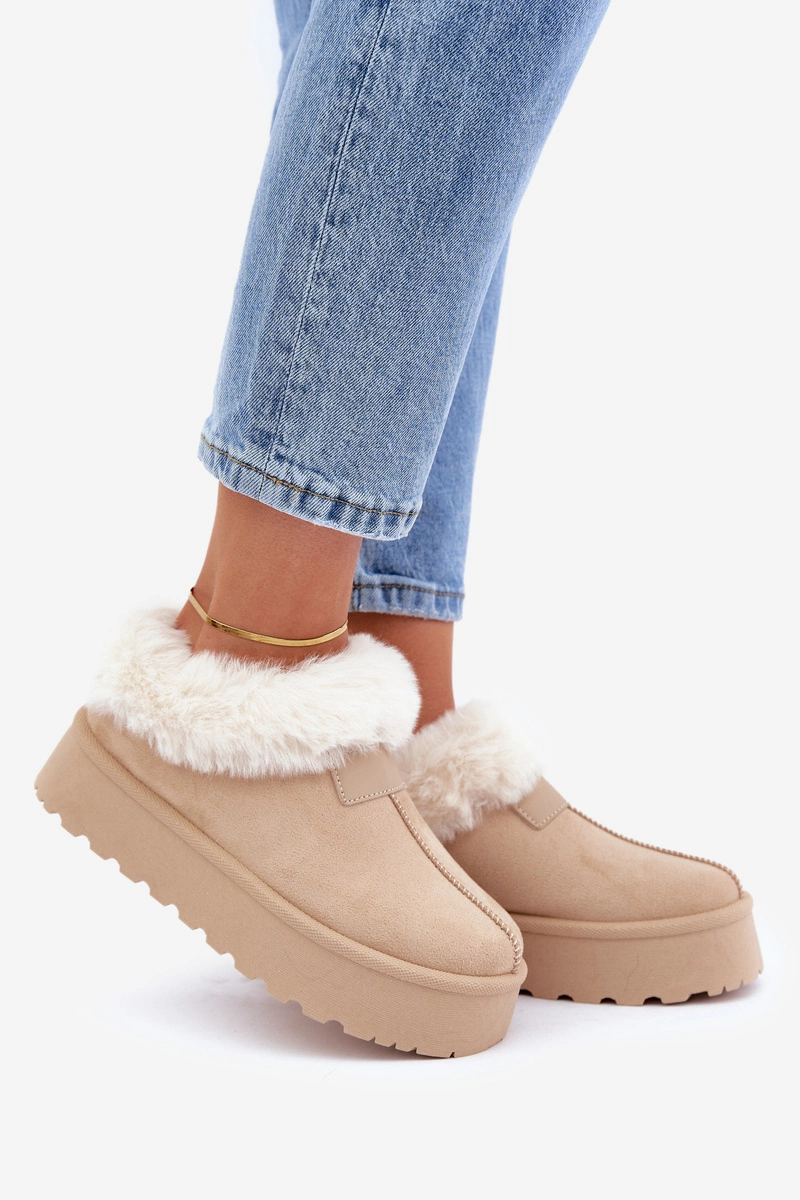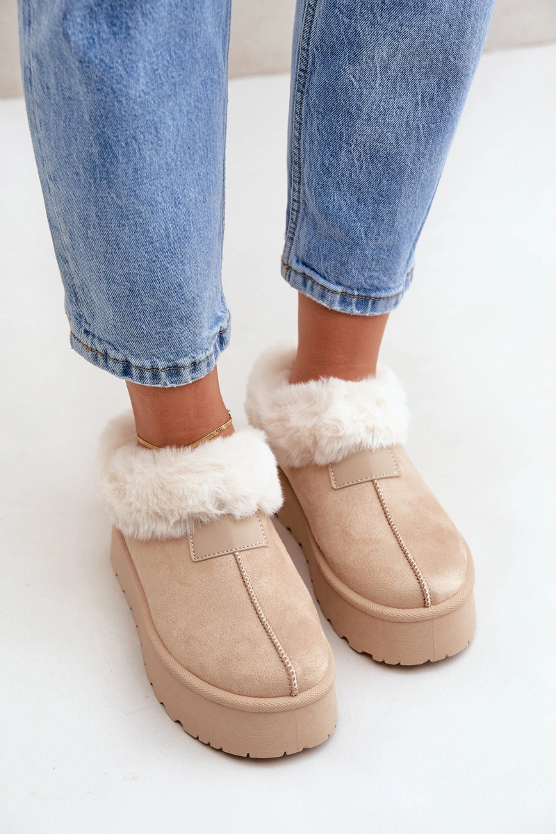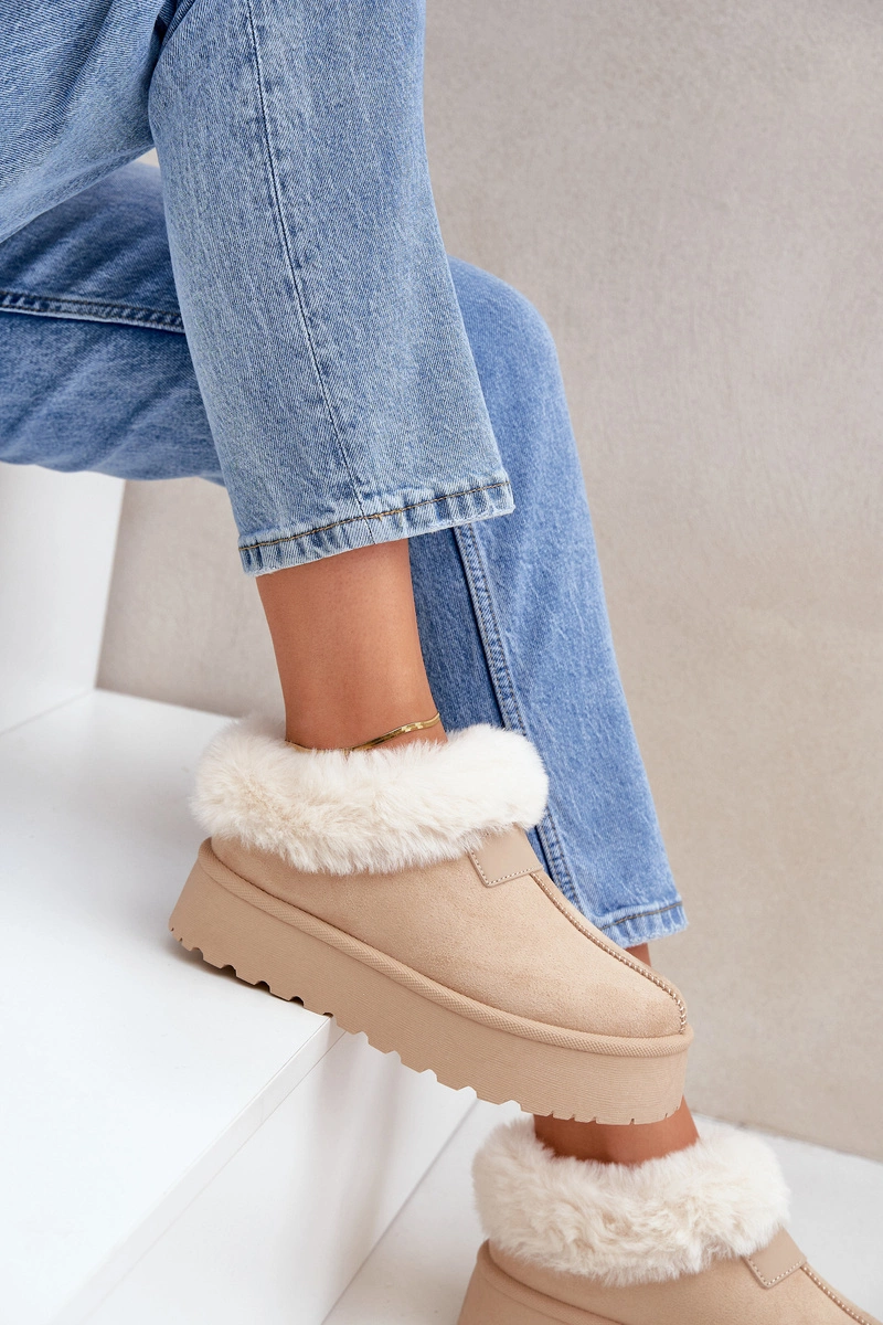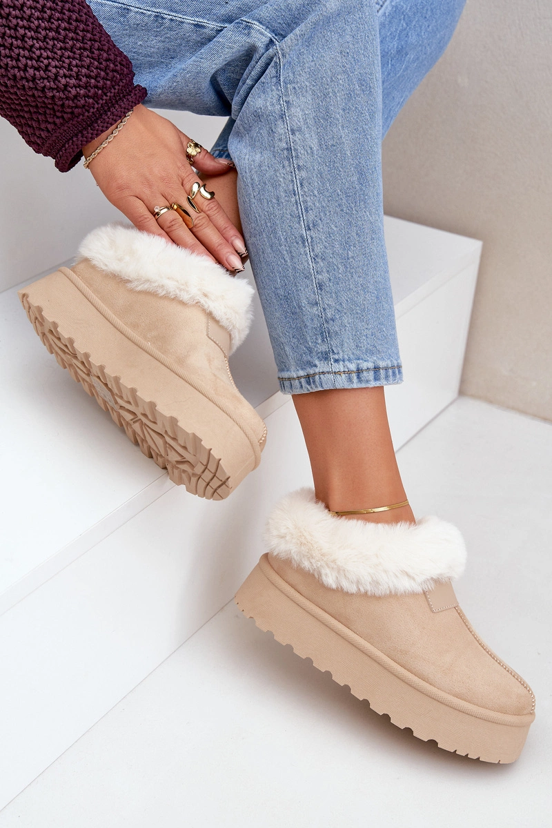 Śniegowce Z Niską Cholewką Z Futerkiem Na Platformie Eko Zamszowe Jasnobeżowe Neathoria