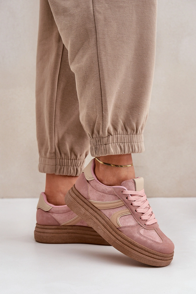 Sneakersy Damskie Na Platformie Różowe Lesida