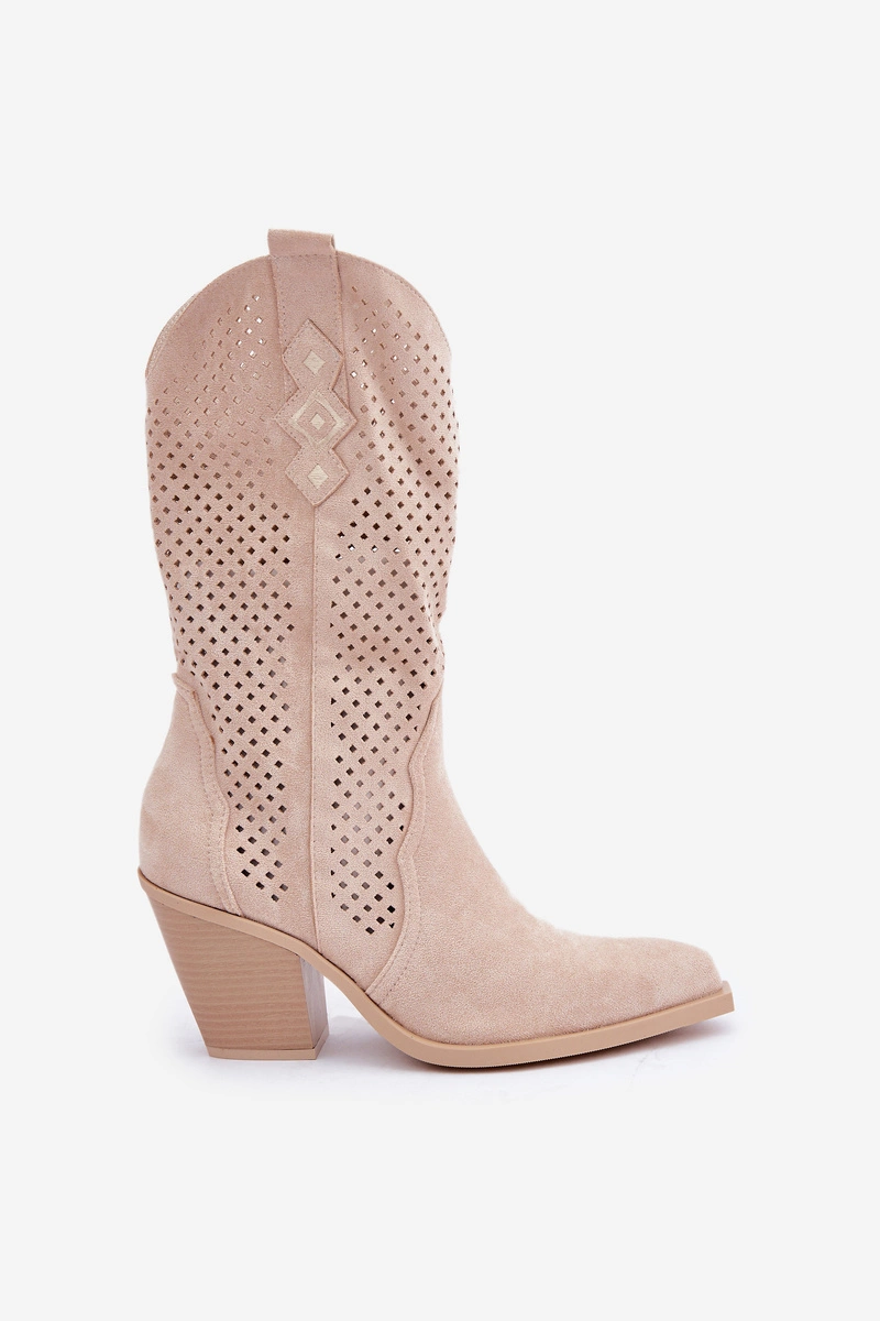 Ażurowe Botki Kowbojki Na Słupku Jasnobeżowe Salive