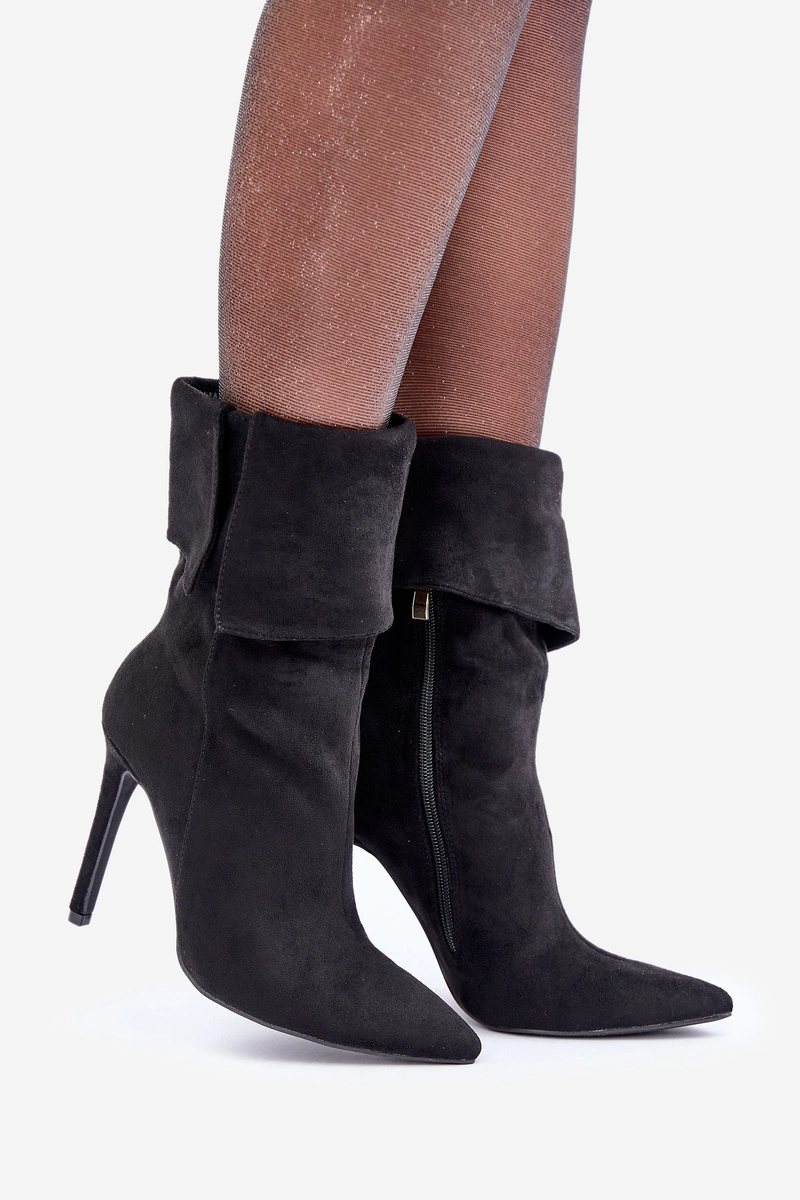 Botki Na Szpilce Z Wywiniętą Cholewką Czarne Luxira