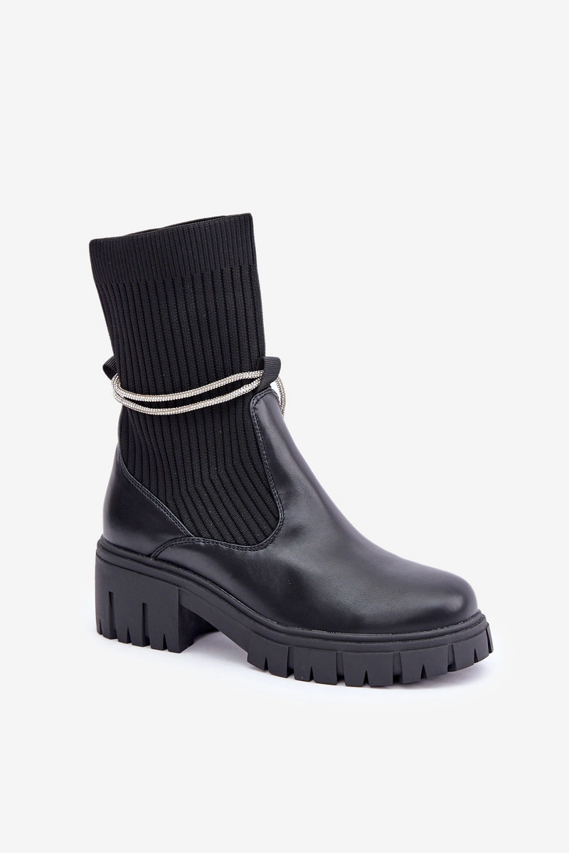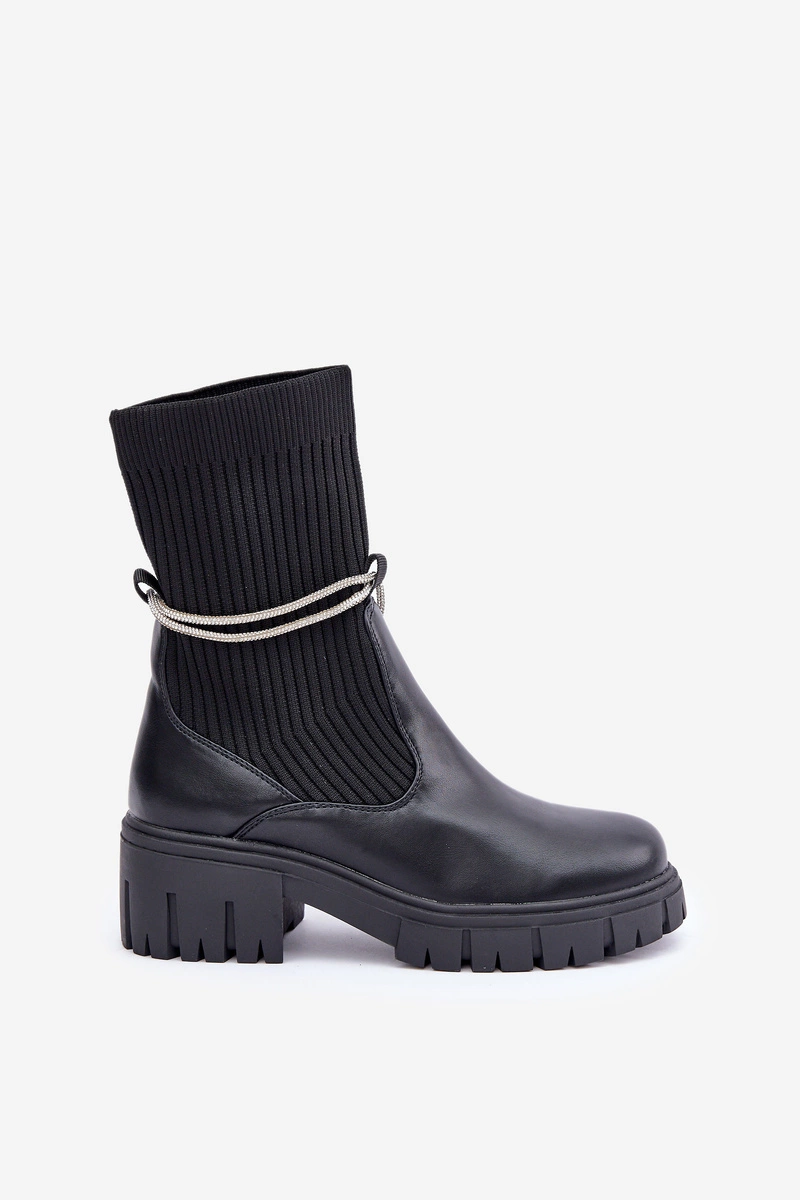 Botki Ze Skarpetą I Błyszczącym Wiązaniem Czarne Dinarca