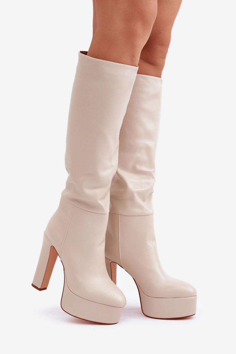 Kozaki Na Słupku I Platformie Z Eko Skóry Jasnobeżowe Felilorn