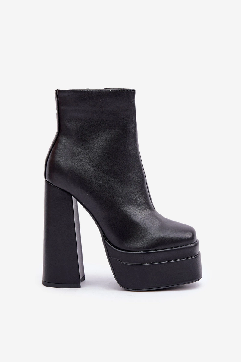 Botki damskie wykonane z eko skóry, osadzone na masywnej platformie i wysokim obcasie, które dodają charakteru każdej stylizacji. Model z zaokrąglonymi noskami zapewnia komfort noszenia. Wnętrze ocieplane kocem obuwniczym, idealne na chłodniejsze dni. Praktyczne zapięcie na zamek ułatwia zakładanie. Stylowe i wygodne, doskonałe na co dzień i specjalne okazje. Przy wyborze rozmiaru prosimy sugerować się tabelą rozmiarów.