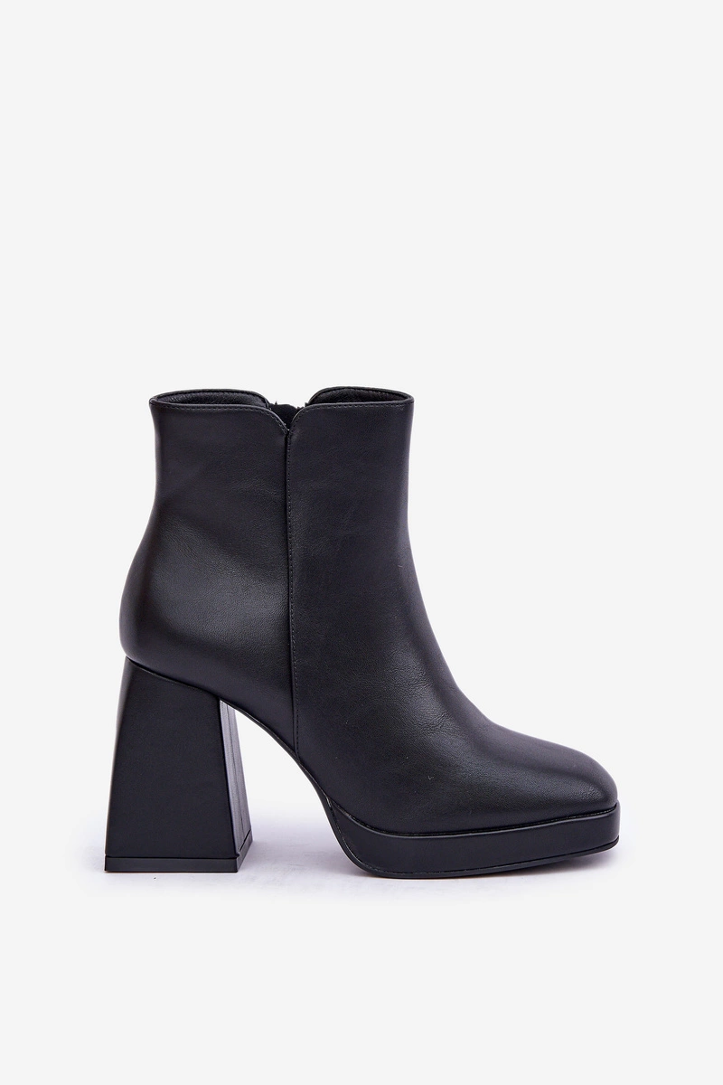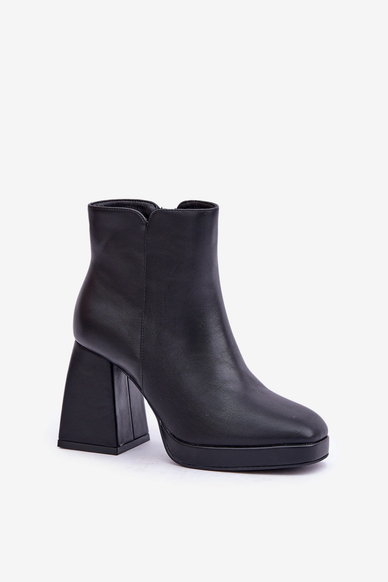Botki Na Wysokim Obcasie Słupku Eko Skórzane Czarne Selarae