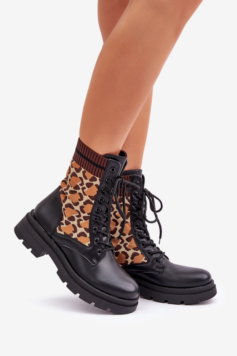 Botki Workery Damskie Ze Skarpetą W Panterkę Czarne Penthis