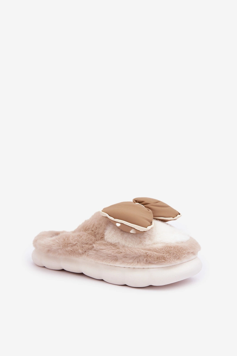 Futrzane Kapcie Z Kokardką Beżowe Grilis
