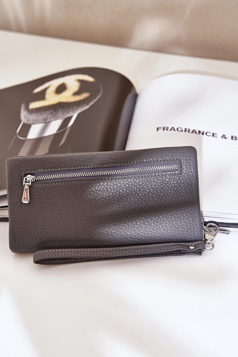 Duży Portfel Damski Z Tłoczeniem Eko Skóra Szary Martiel