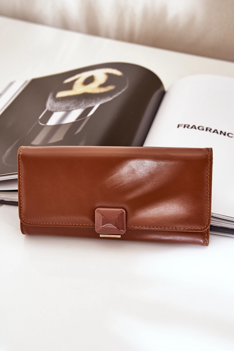 Eko Skórzany Gładki Portfel Damski Brązowy Erolia