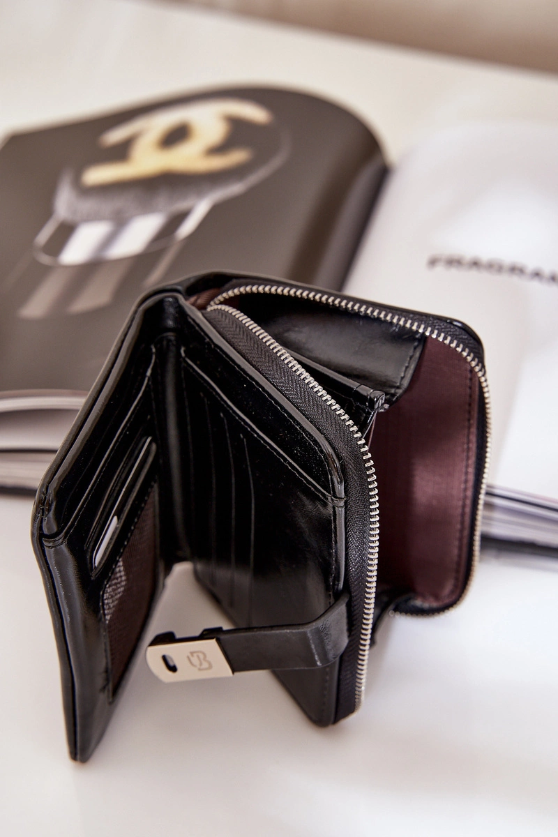 Lakierowany Damski Portfel Portmonetka Czarny Yathika