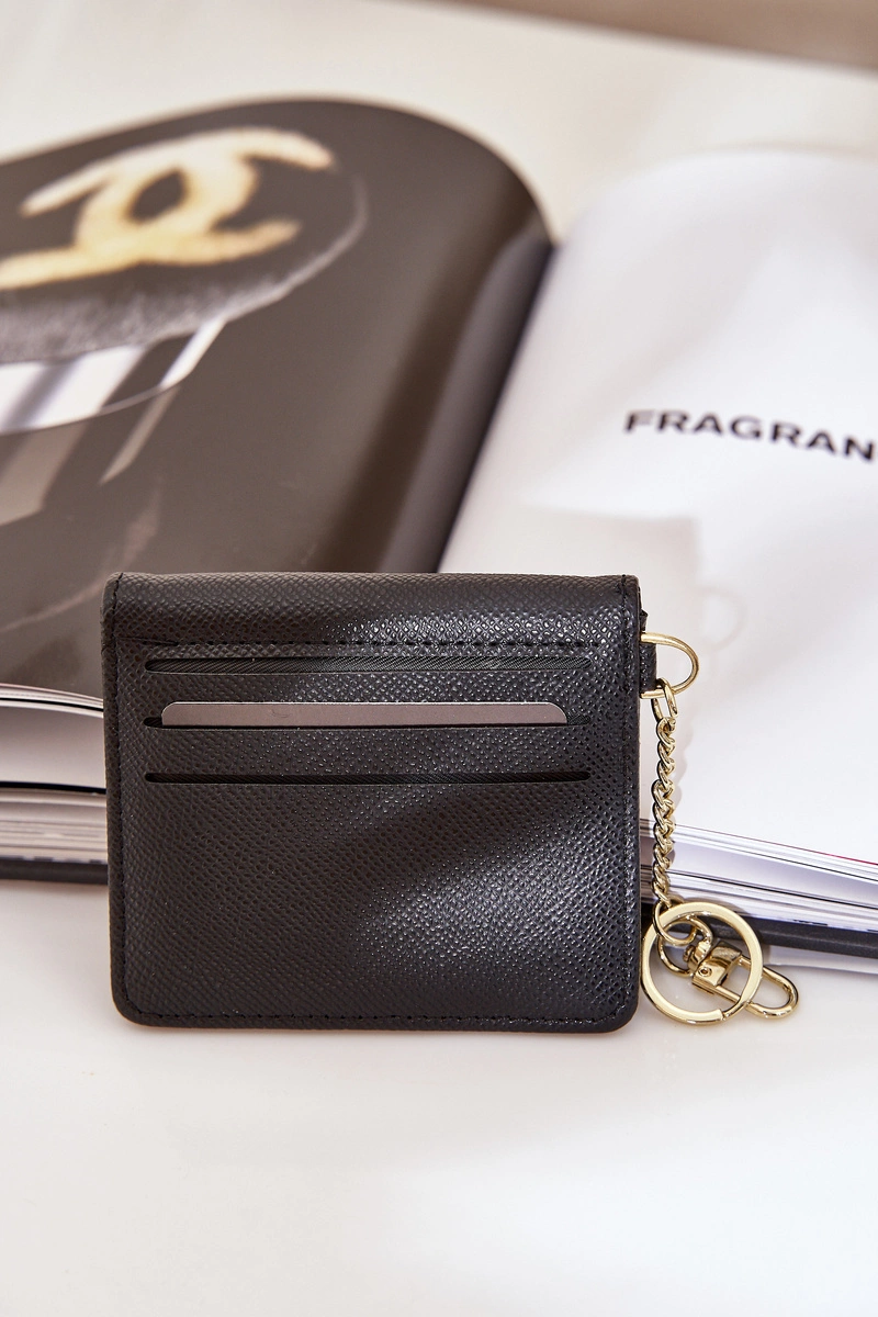 Etui Na Karty Ze Złotym Brelokiem Eko Skóra Czarny Iritinme