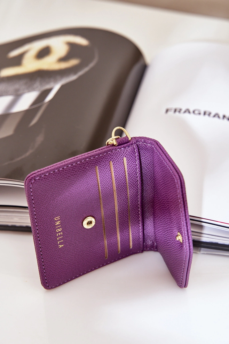 Etui Na Karty Ze Złotym Brelokiem Eko Skóra Fioletowy Iritinme