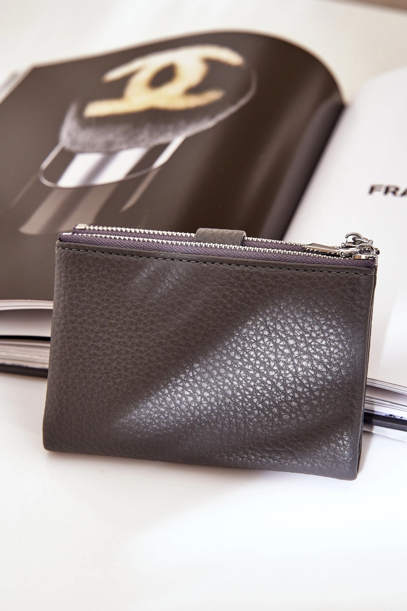 Eko Skórzany Portfel Damski Ciemnoszary Bronica