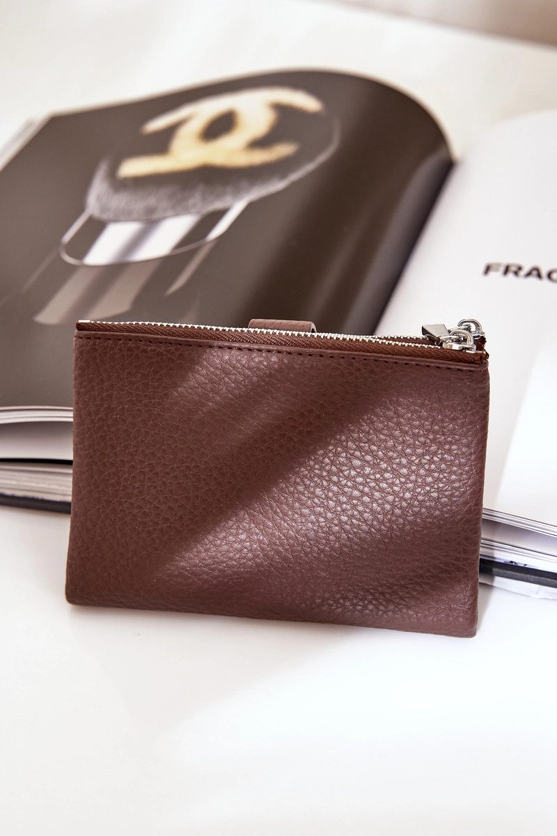Elegancki portfel damski wykonany z eko skóry. Model ten posiada dwie kieszenie zamykane na zamek, zapewniające bezpieczne przechowywanie. W środku znajduje się przestrzeń na banknoty, karty oraz miejsce na fotografię. Idealny dodatek na co dzień, doskonały również jako pomysł na prezent.