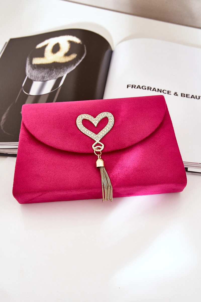 Torebka Kopertówka Z Ozdobnym Sercem Eko Zamszowa Fuksja Evilinas