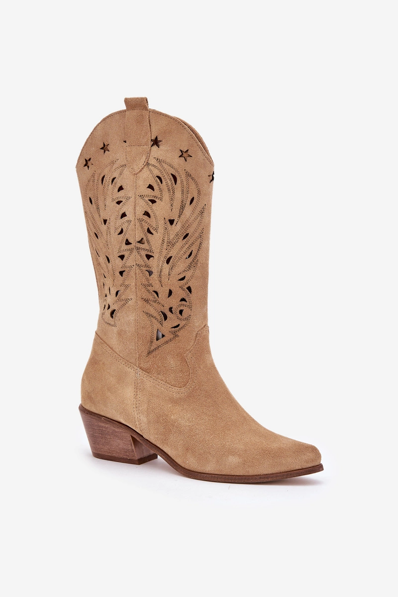 Zamszowe Kozaki Z Ażurową Cholewką Zazoo 3714 Beżowe