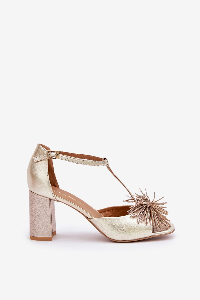Sandały Skórzane Na Słupku Z Ozdobą Laura Messi 2758 Złote