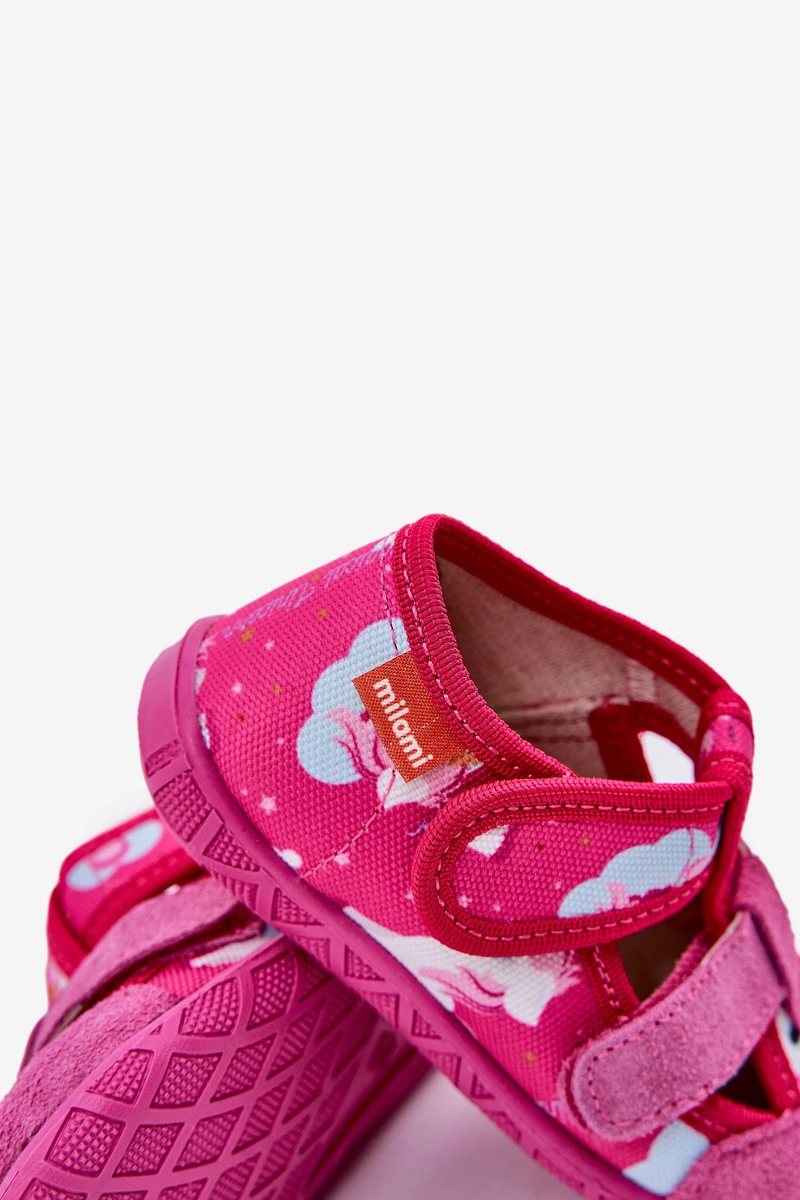 Kapcie Milami Dziecięce Na Rzepy W Jednorożce Fuksja Reathiana