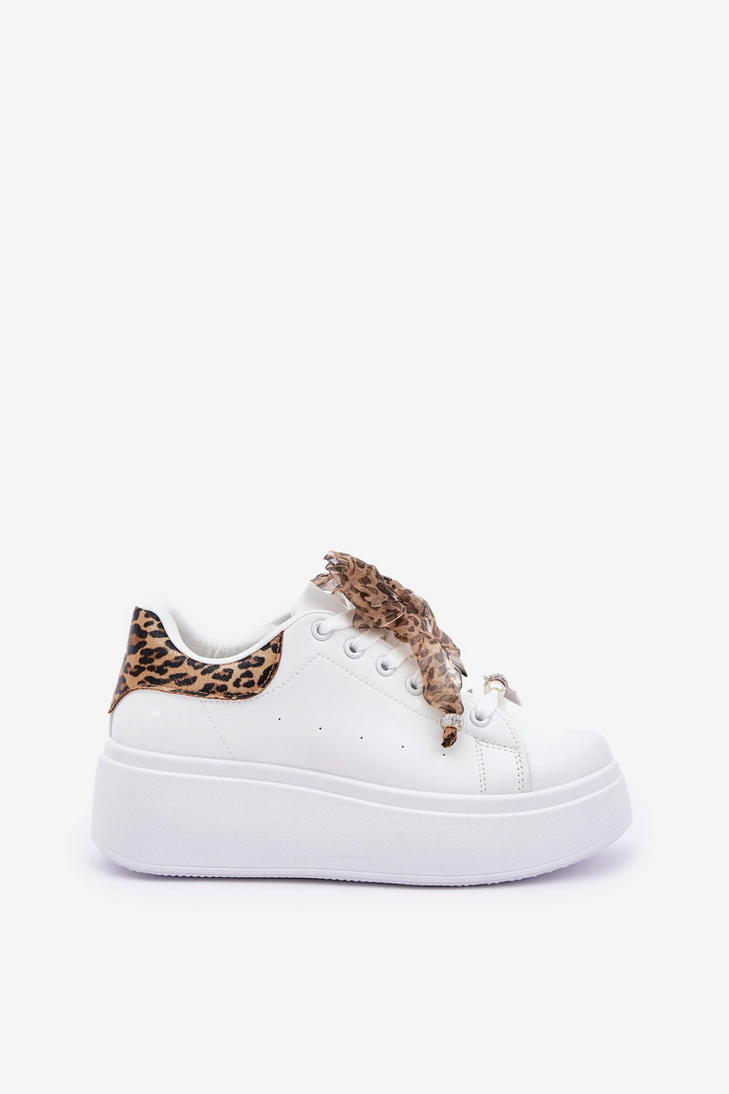 Sneakersy Damskie Na Platformie Z Panterką Białe Lerissna