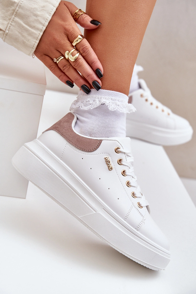 Sneakersy Damskie Na Platformie Eko Skóra Białe Lelandine