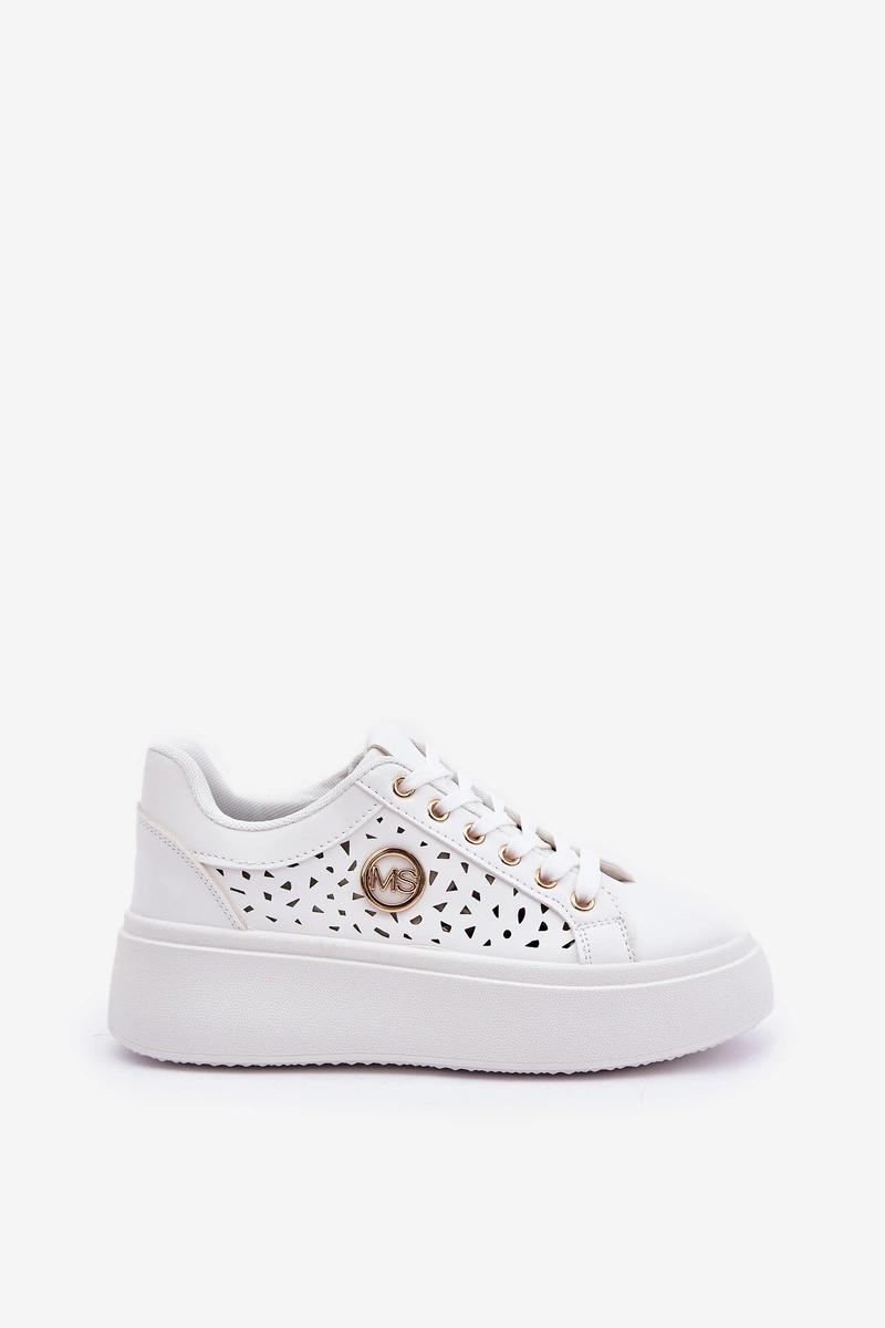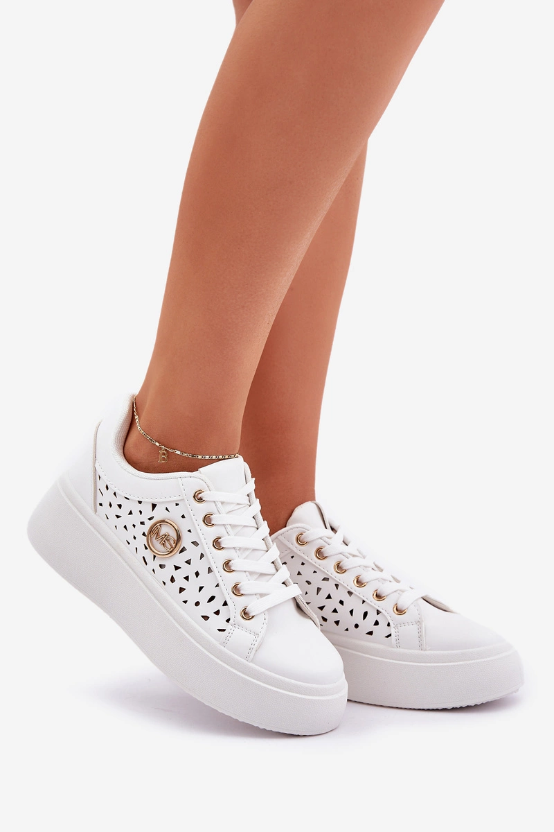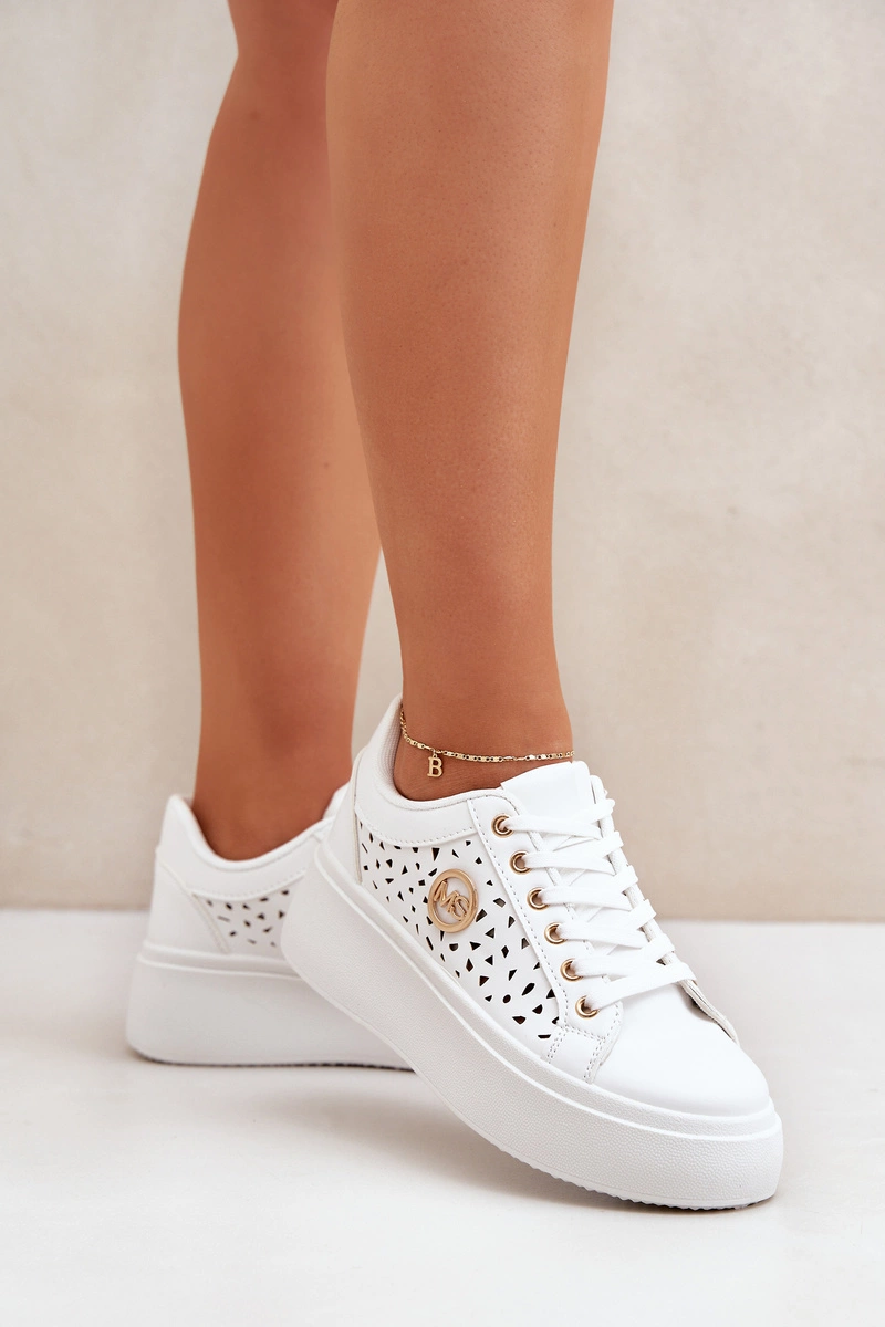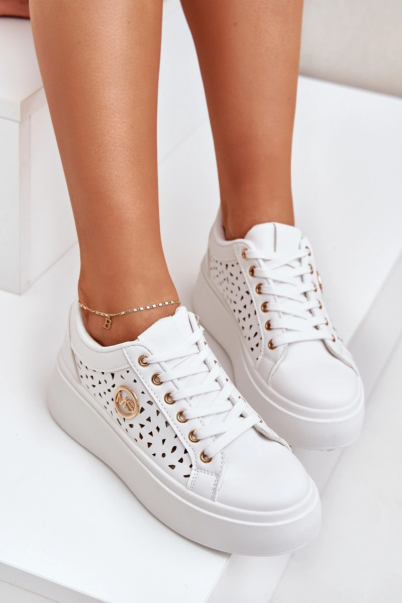 Ażurowe Sneakersy Ze Złotym Detalem Białe Cassildi