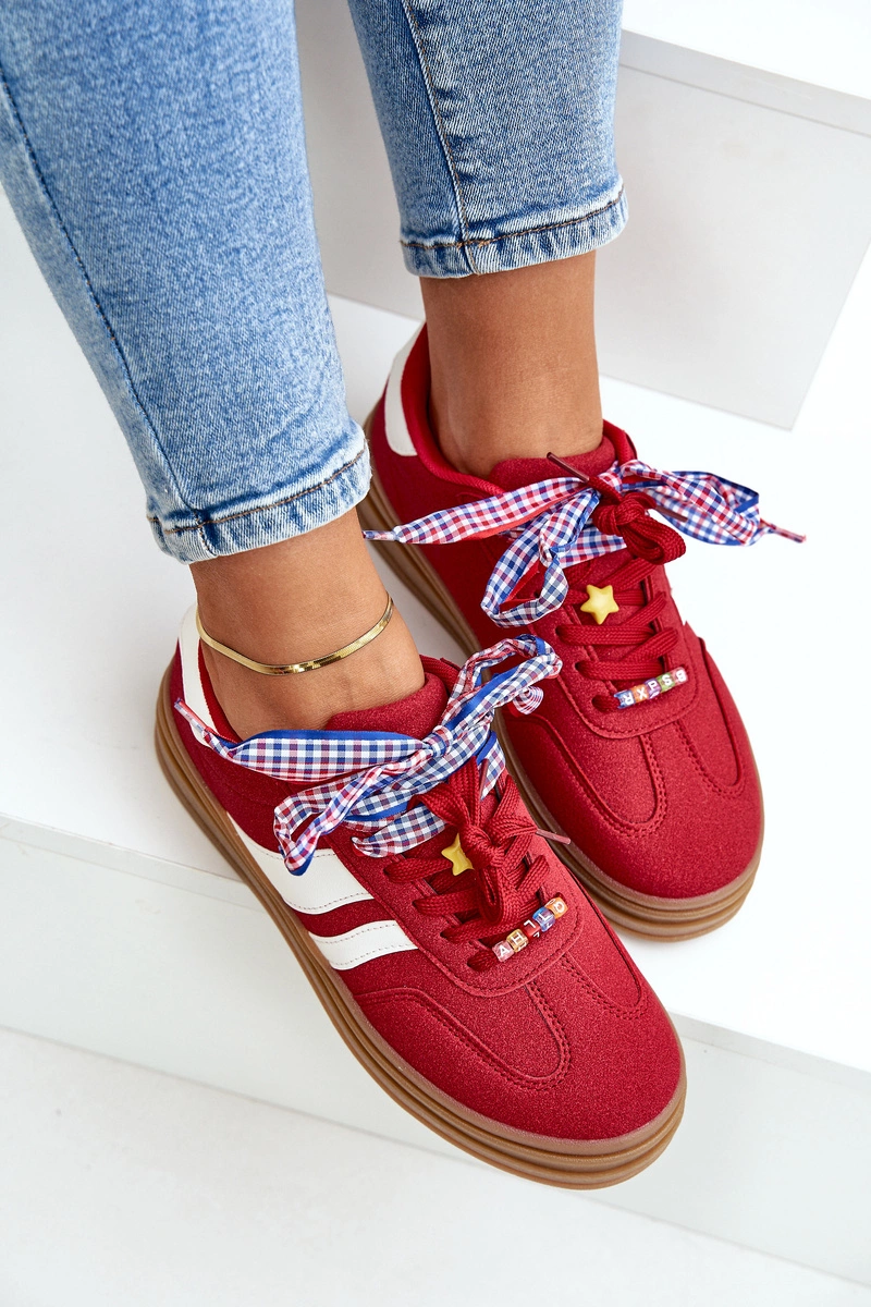 Sneakersy Damskie Z Przypinkami Czerwone Jariana