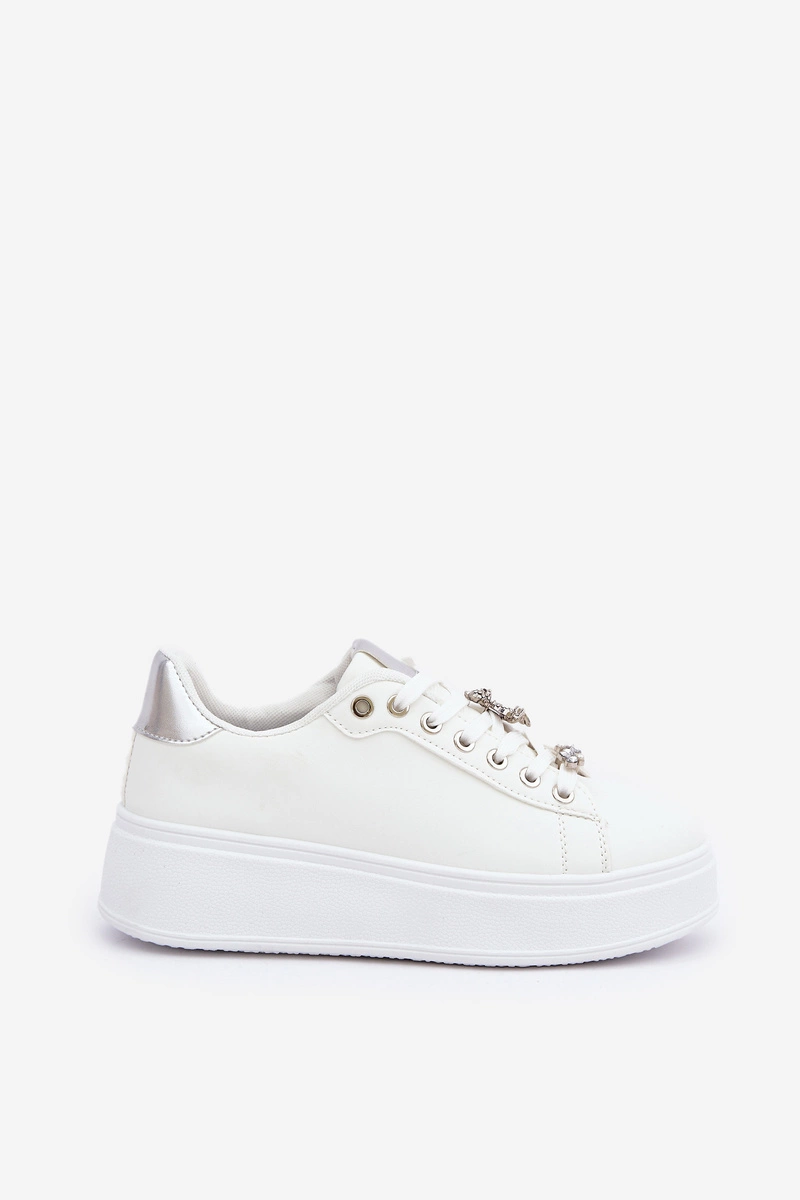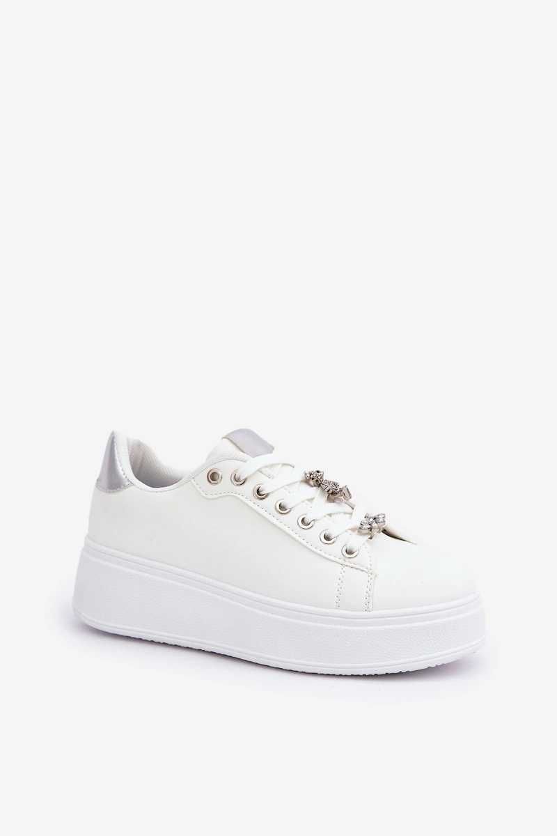 Eko Skórzane Sneakersy Z Przypinkami Biało-Srebrne Enalirae