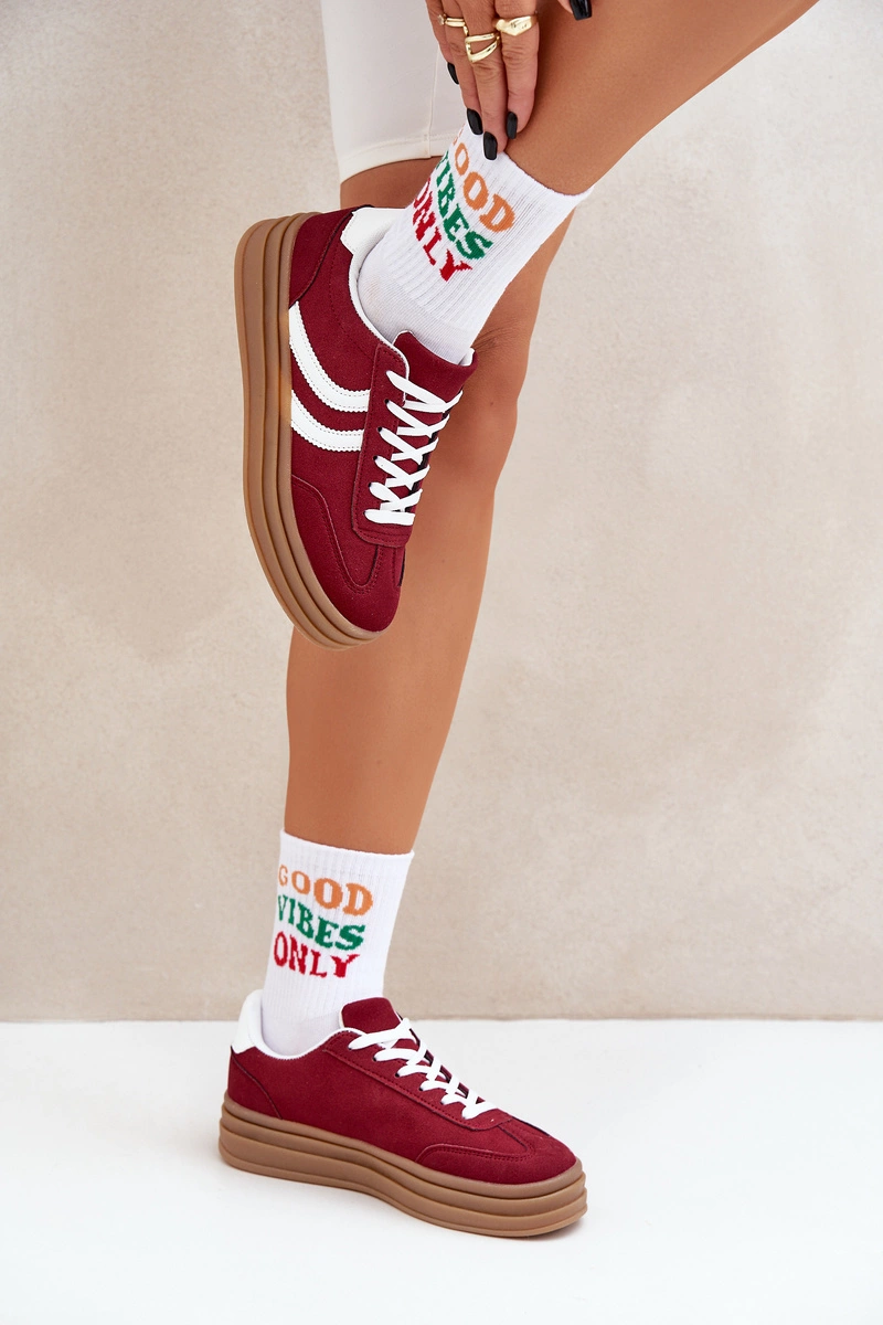 Stylowe Sneakersy Na Platformie Bordowe Doriwa