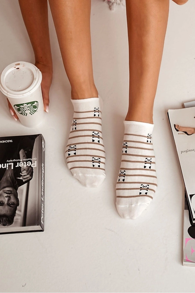 Skarpetki Stopki Damskie Bawełniane Pandy I Paski Ecru