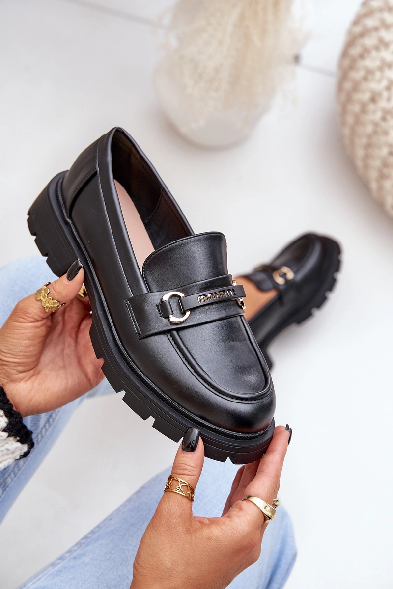 Klasyczne Mokasyny Damskie Z Eko Skóry Czarne Savethira