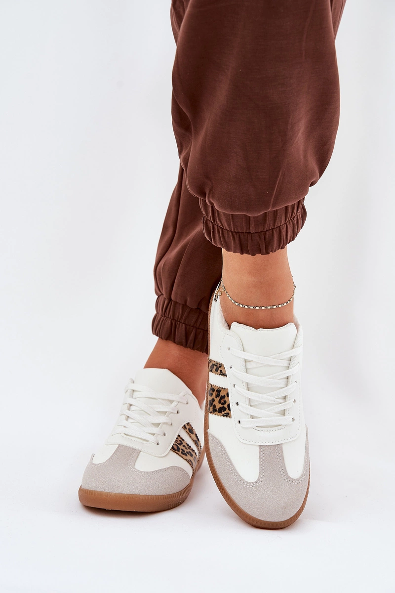 Niskie Sneakersy Damskie Z Eko Skóry Panterka Białe Nonalorin