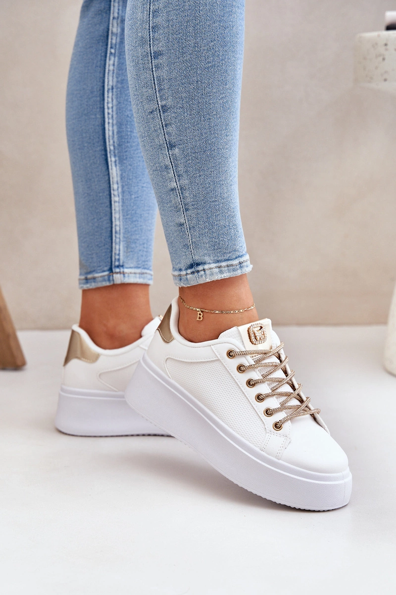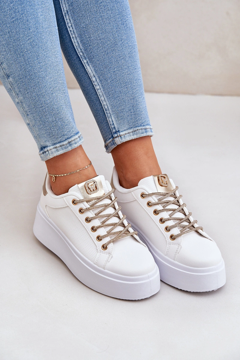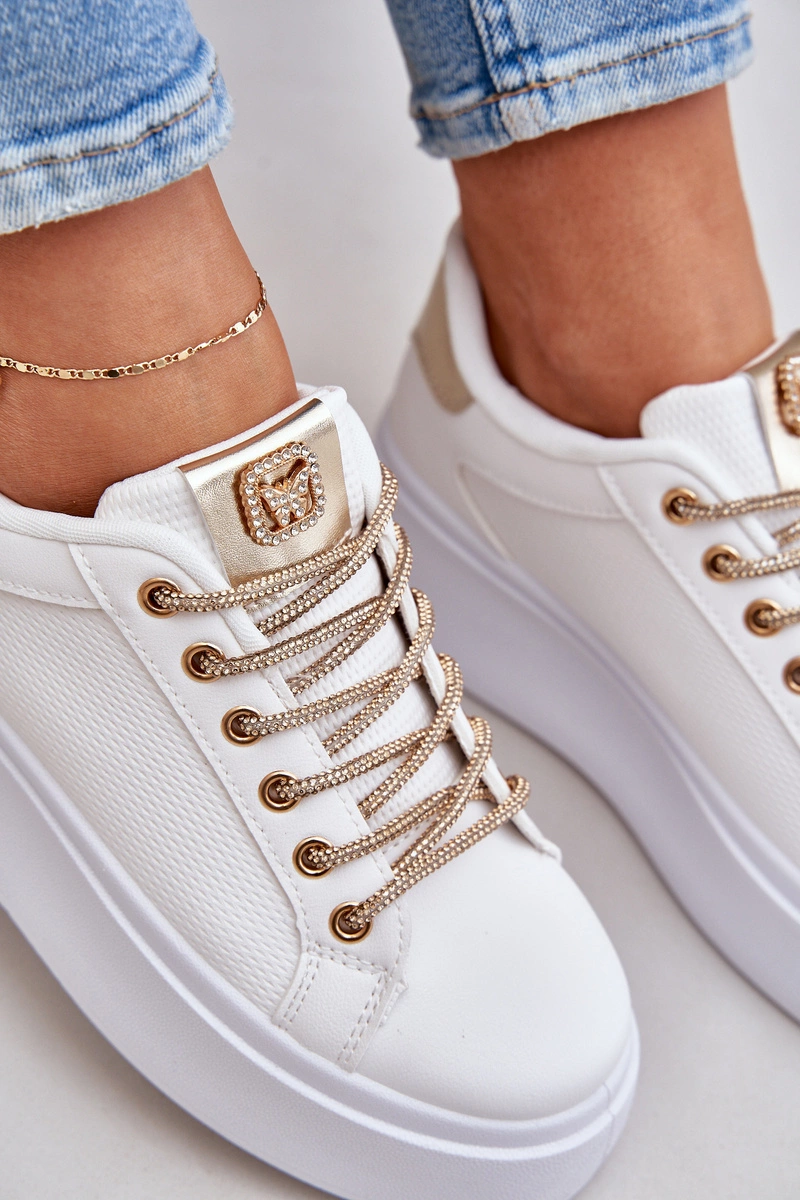 Sneakersy Na Platformie Z Ozdobnymi Sznurówkami Biało-Złote Fonetha