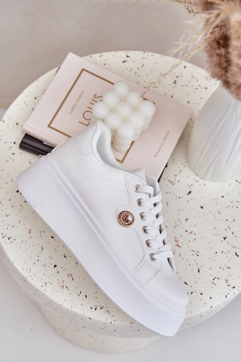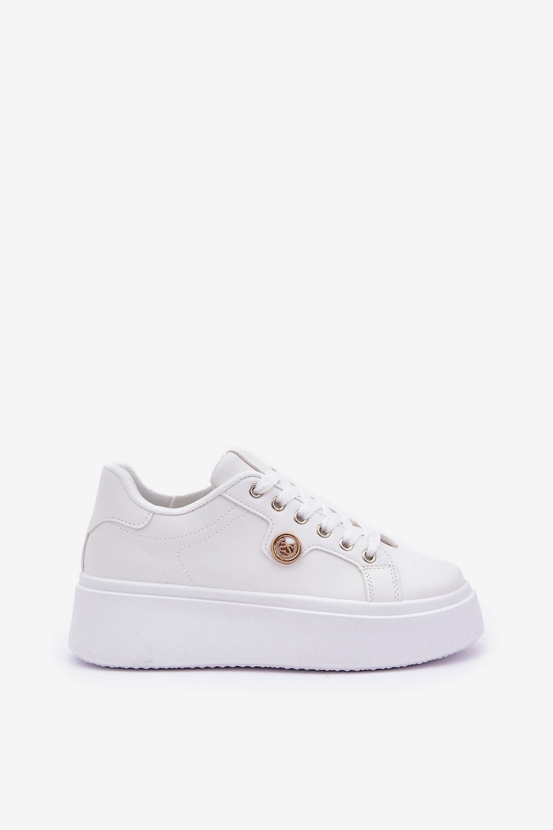 Eko Skórzane Sneakersy Na Platformie Ze Złotym Detalem Białe Zingie