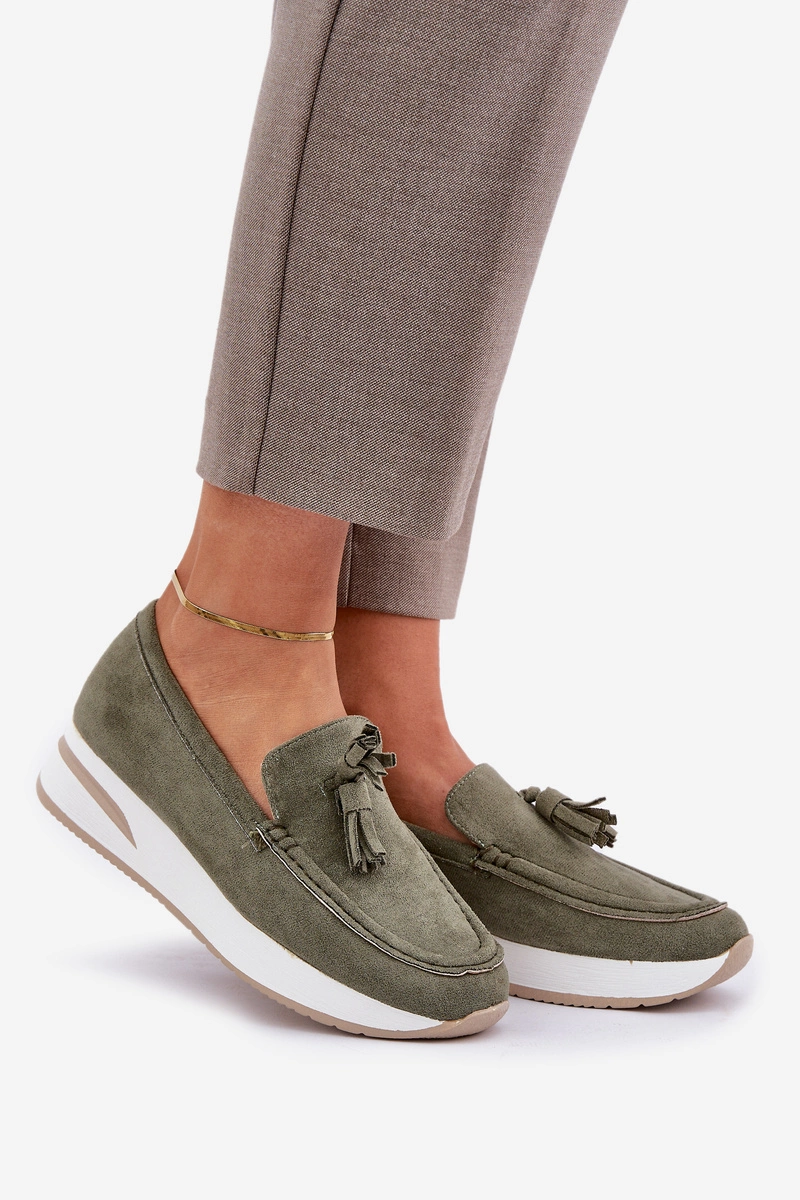 Mokasyny Na Delikatnym Koturnie Eko Zamszowe Zielone Challavia