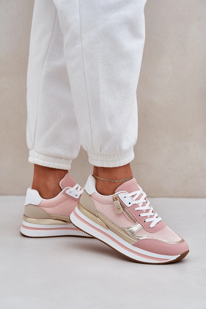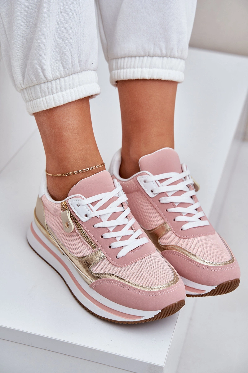Buty Sportowe Błyszczące Damskie Na Platformie Różowe Florefedi