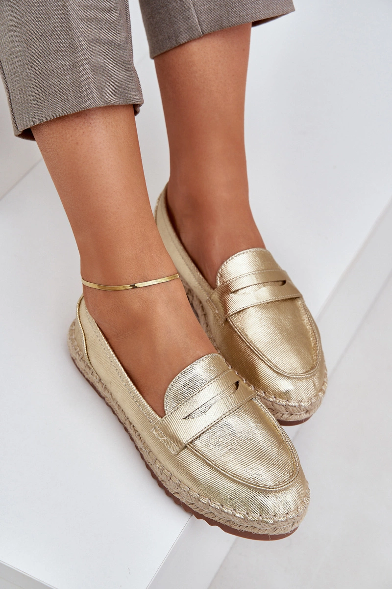 Espadryle Damskie Z Jutową Plecionką Na Płaskiej Podeszwie Złote Shilova