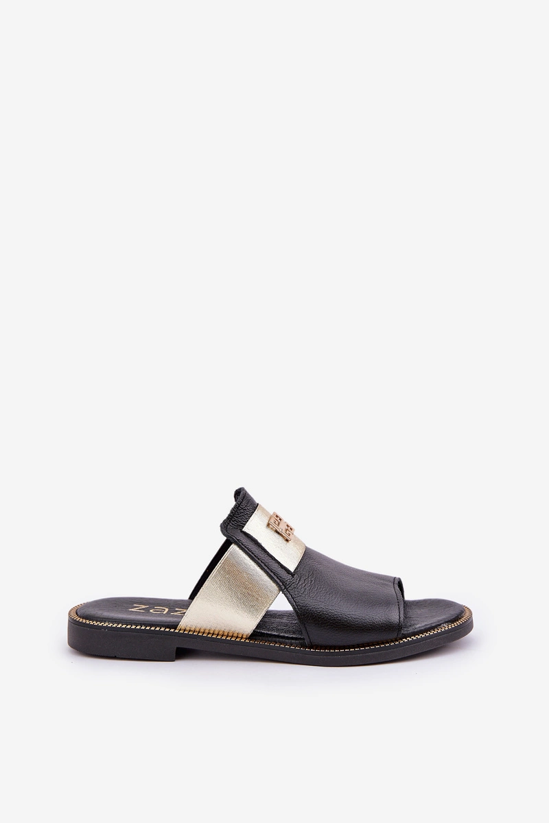 Eleganckie Klapki Ze Skóry Naturalnej Na Płaskim Obcasie Zazoo 40423 Czarne