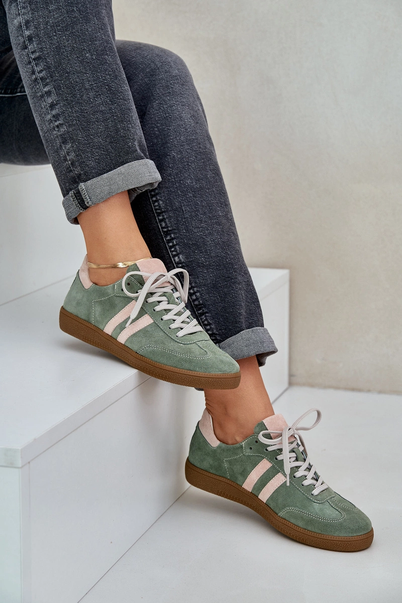Zazoo N1068 Zamszowe Niskie Sneakersy Damskie Zielone