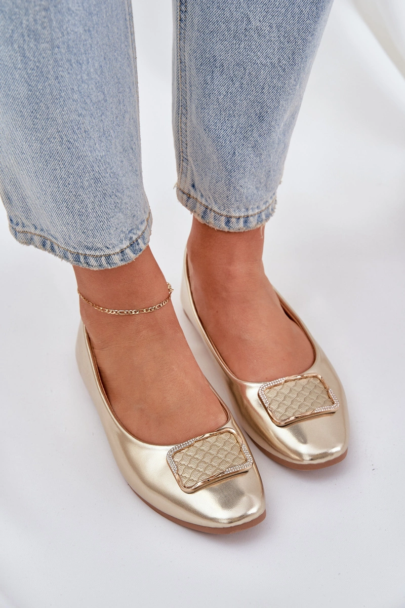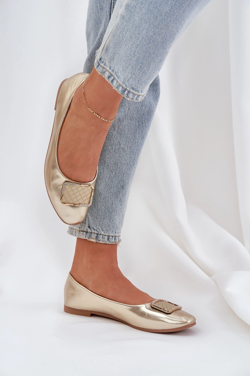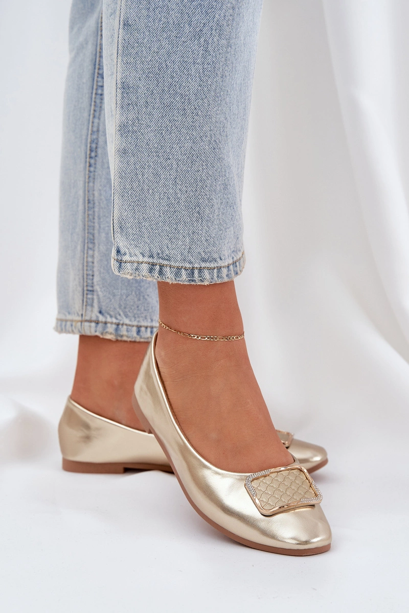 Eko Skórzane Baleriny Z Ozdobą Złote Tulnelia