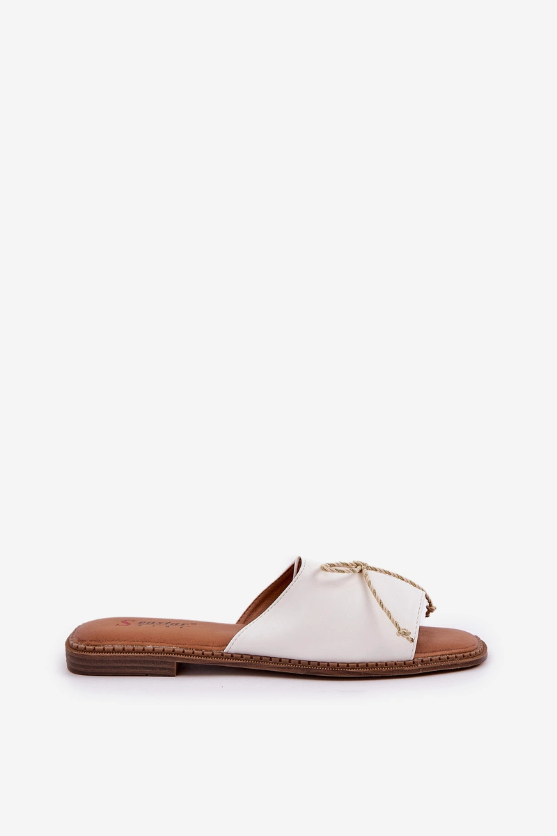 Klapki Na Płaskiej Podeszwie Z Ozdobną Kokardką Białe Deonelis
