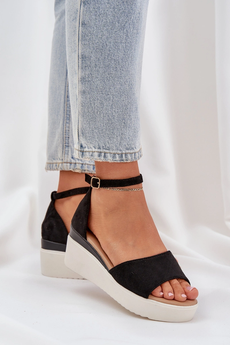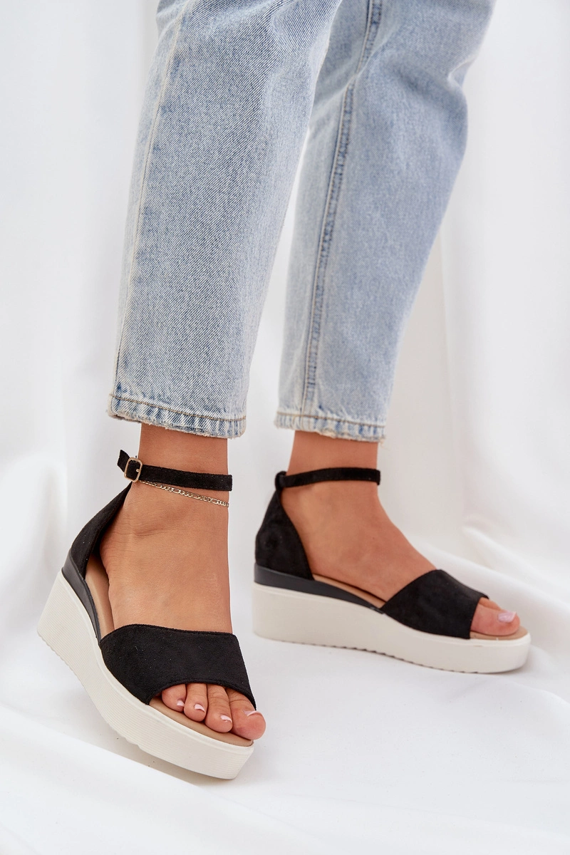 Lekkie Sandały Na Platformie I Delikatnym Koturnie Czarne Gillifia