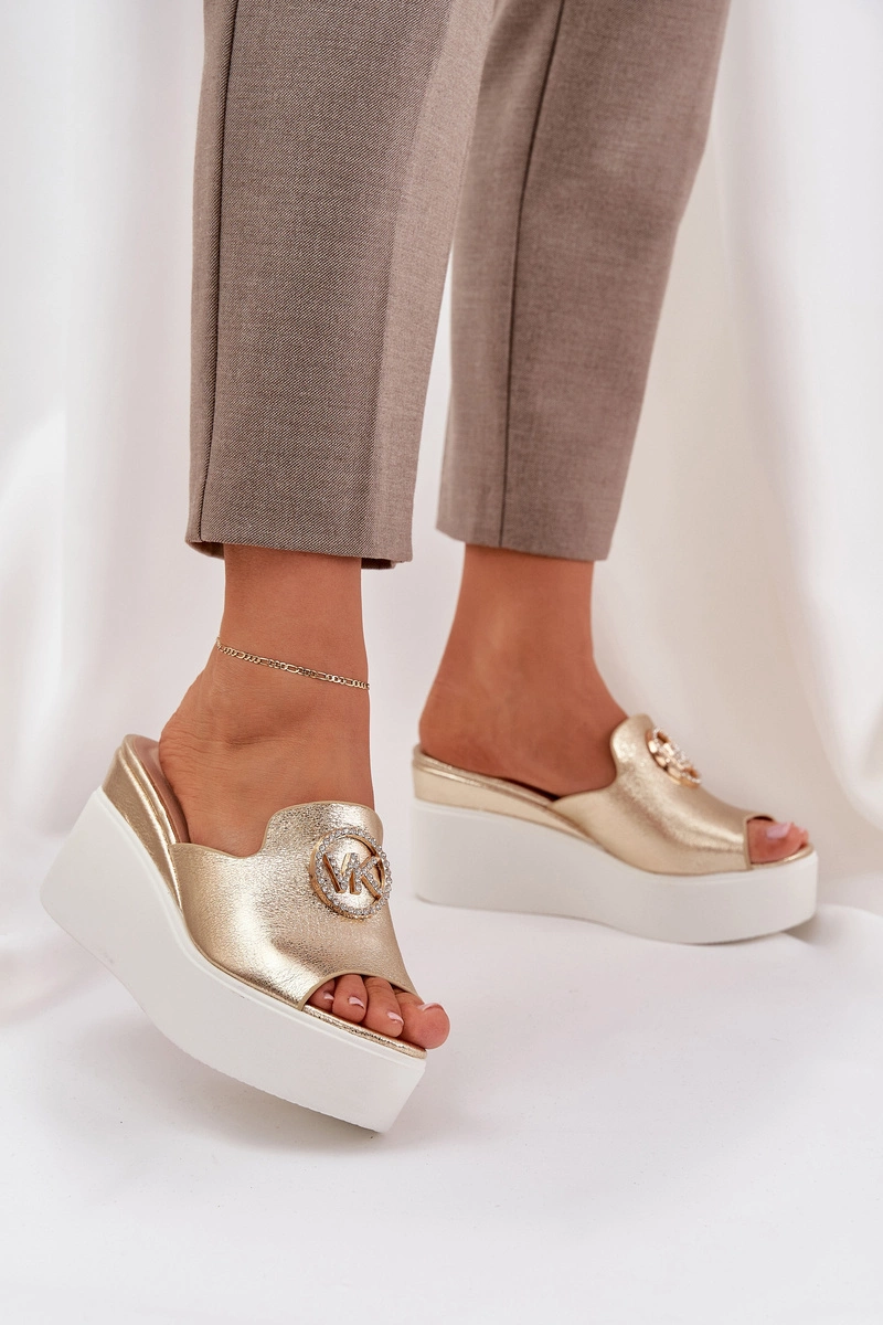 Klapki Na Platformie I Koturnie Z Ozdobą Złote Nanessia