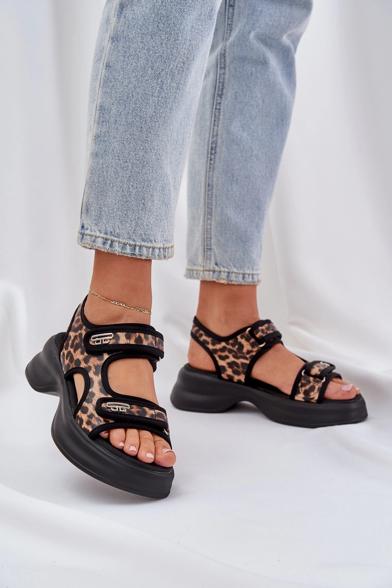 Eko Skórzane Lekkie Sandały Na Platformie Panterka Brązowe Deniffia