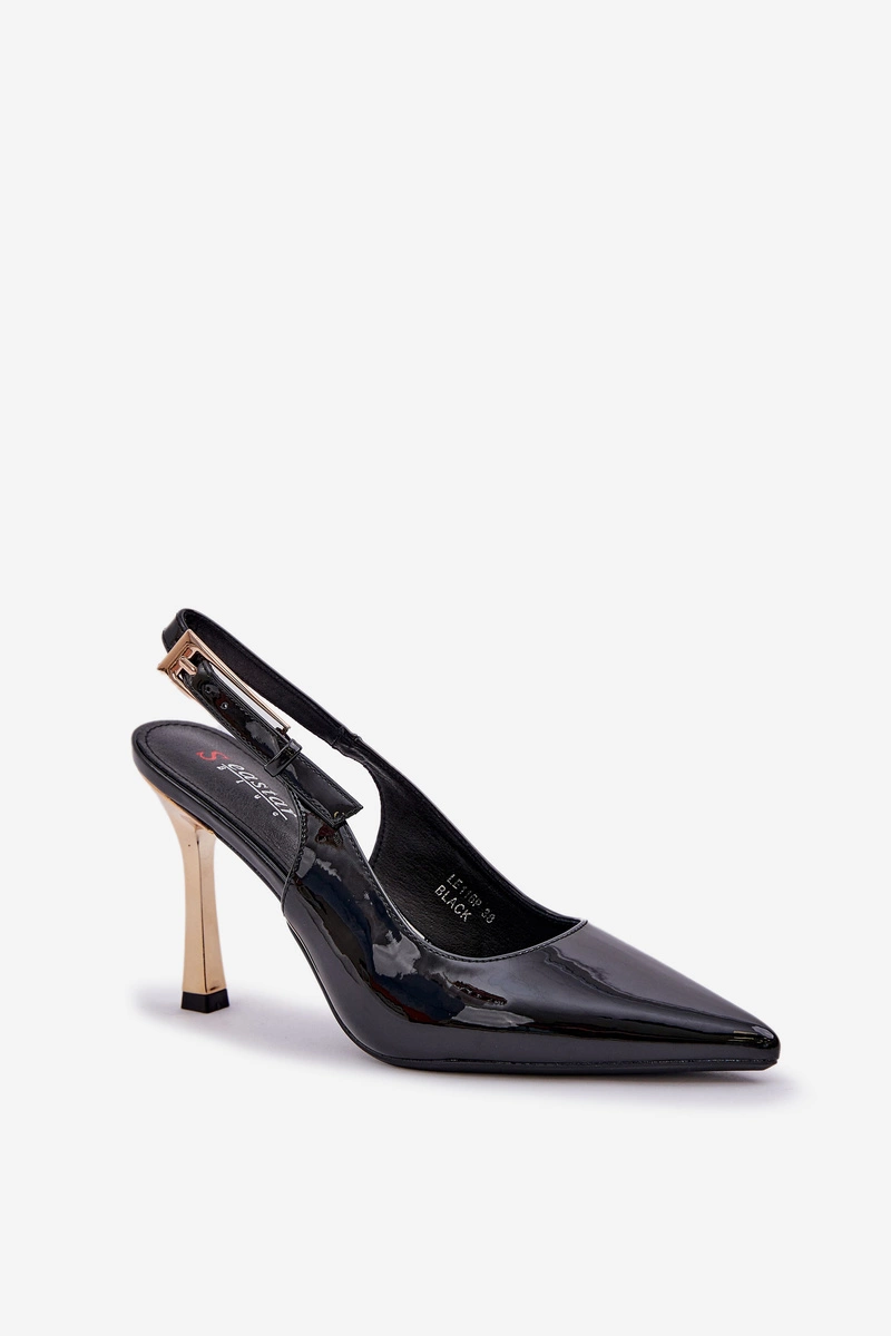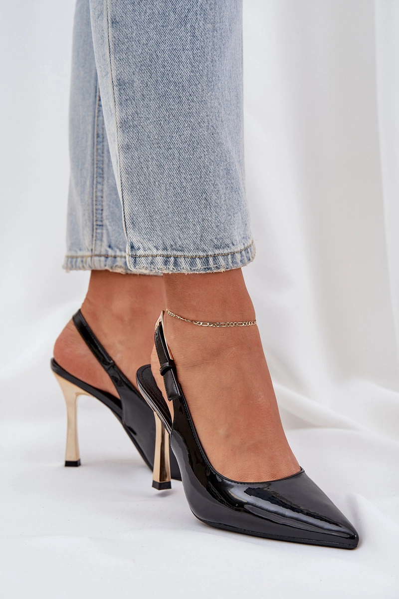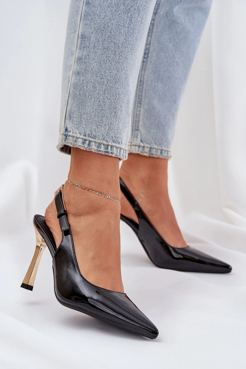 Lakierowane Szpilki Z Odkrytą Piętą I Szpiczastymi Noskami Czarne Rivori