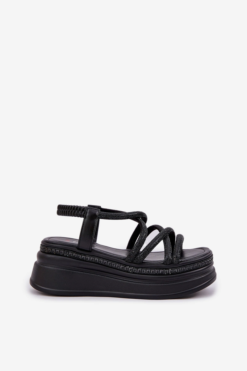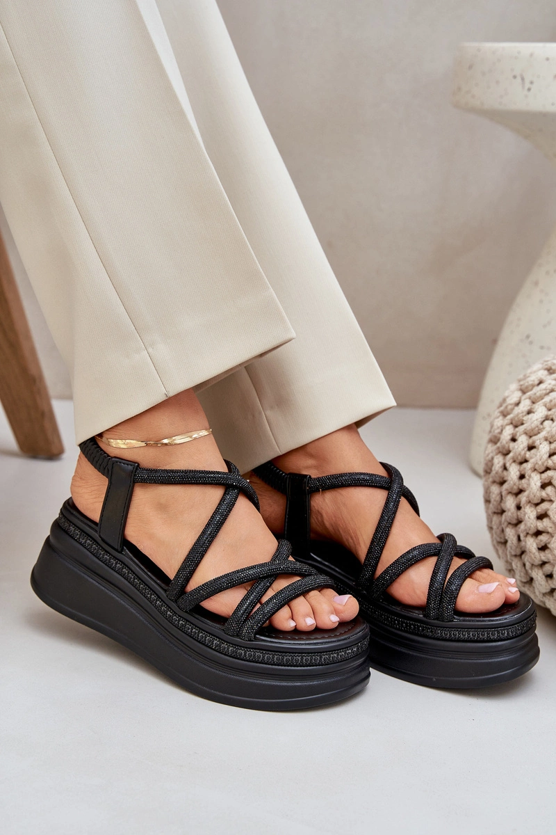 Sandały Na Masywnej Platformie Z Przeplatającymi Się Paskami Czarne Lanathea