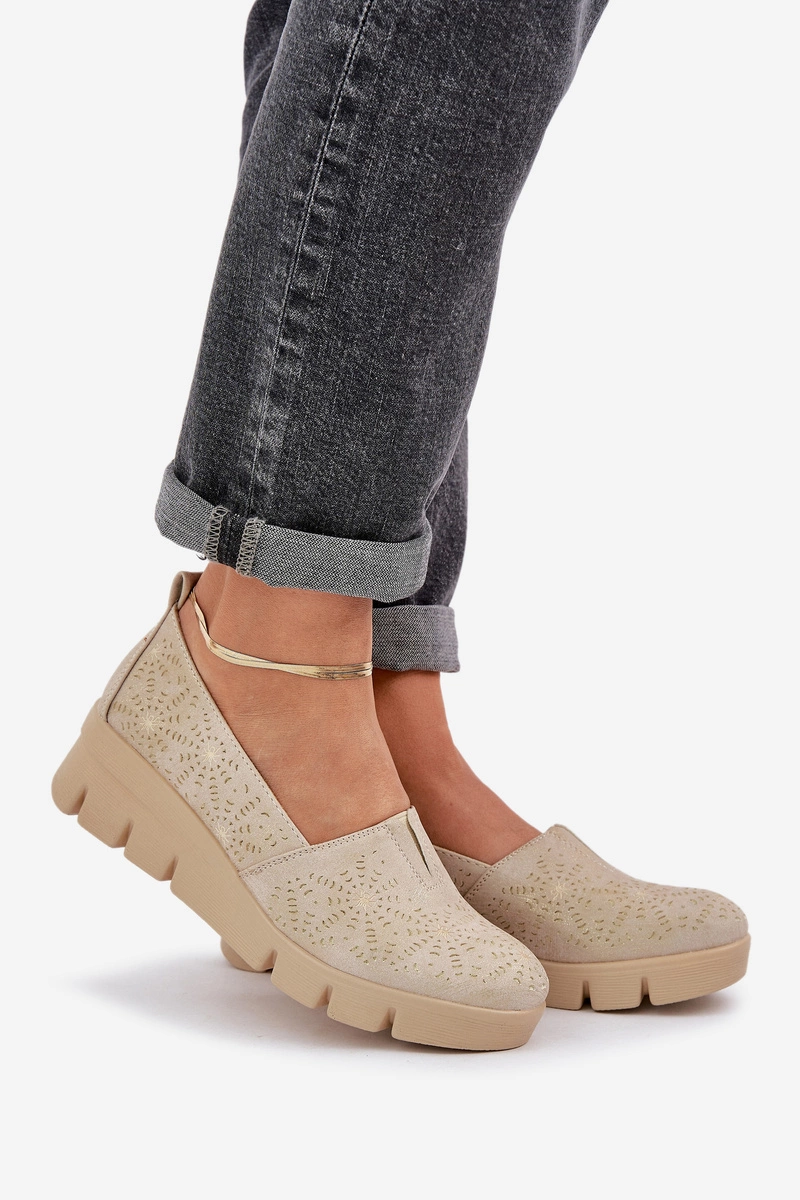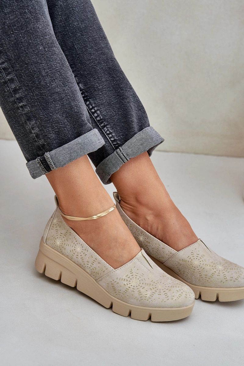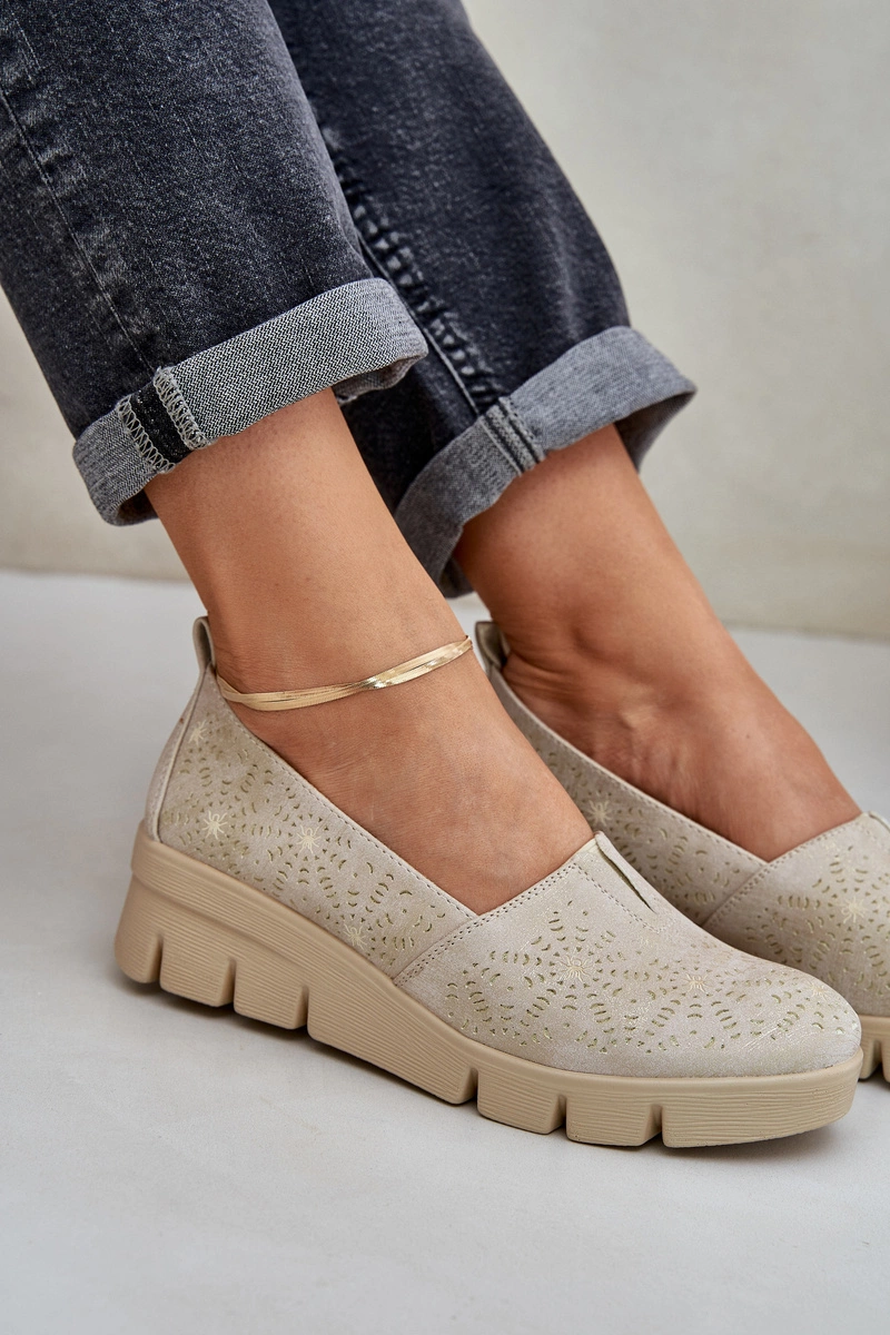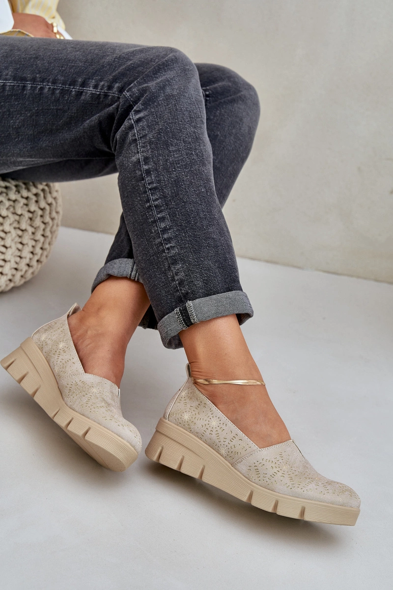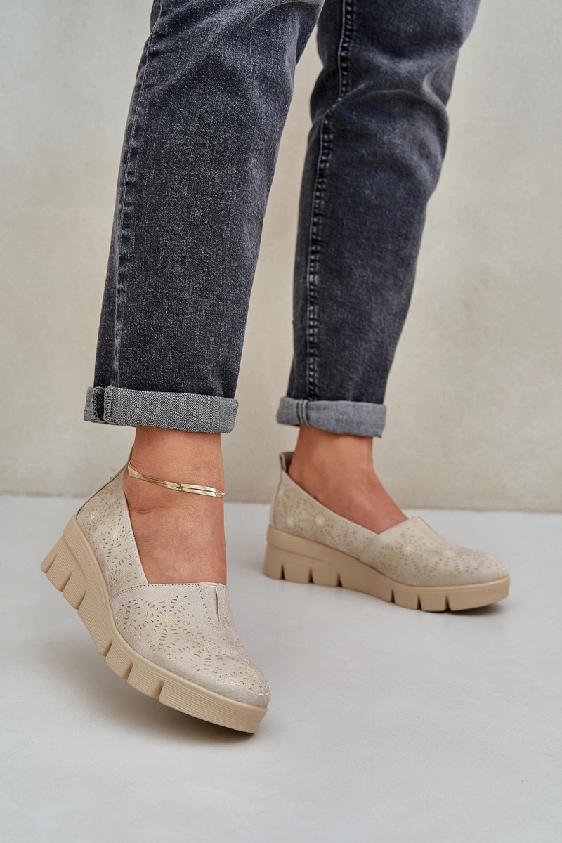 Półbuty Damskie Z Ażurowym Wzorem Na Koturnie Złote Lisvia