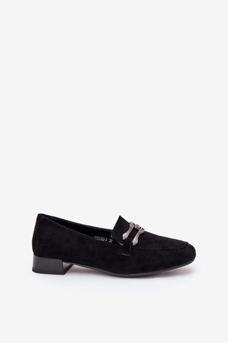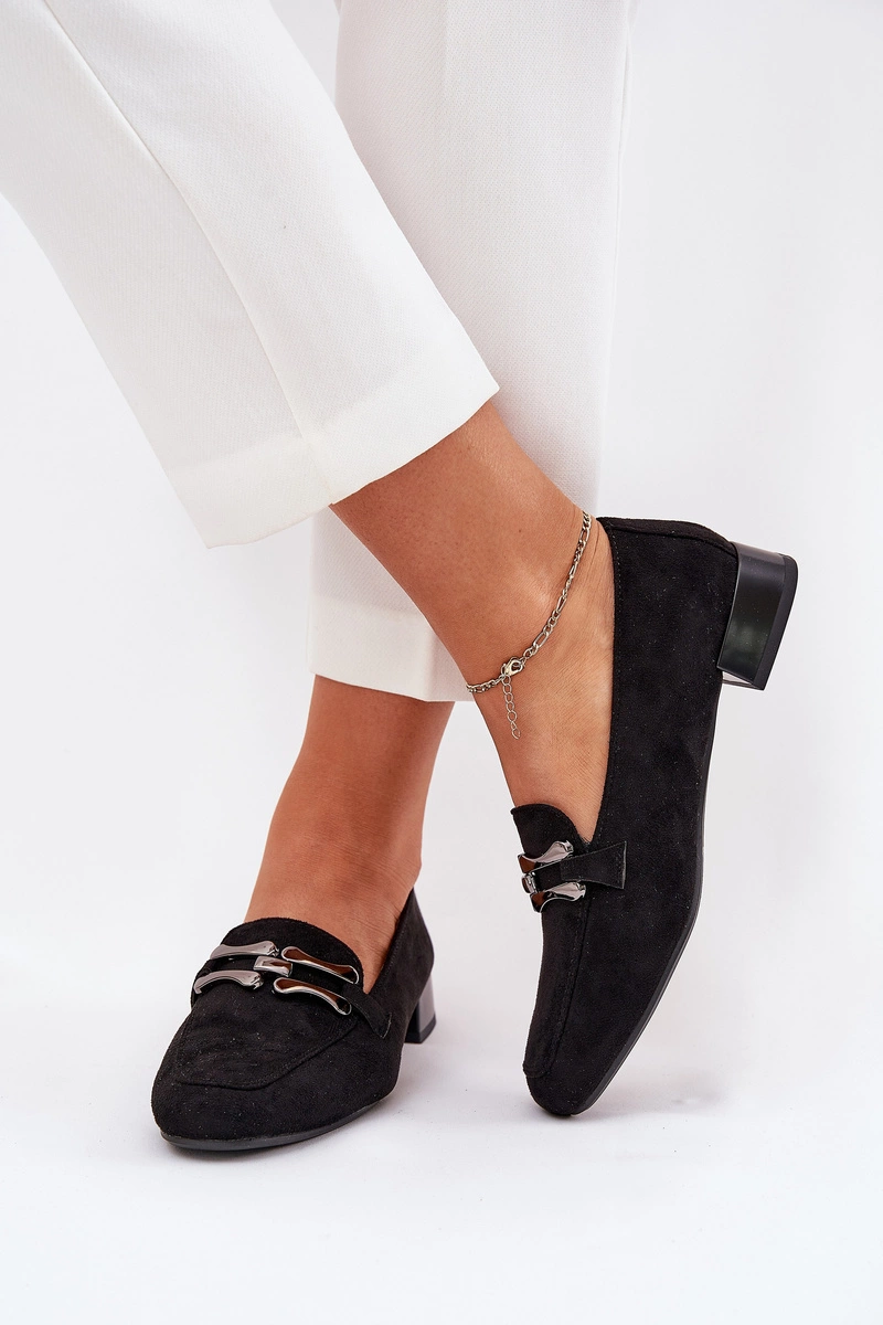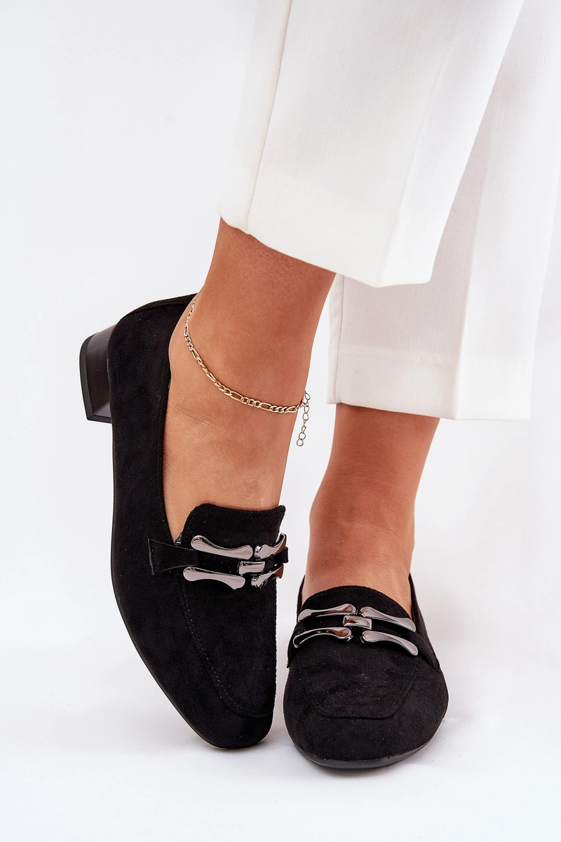 Mokasyny Z Ozdobą Na Delikatnym Obcasie Eko Zamszowe Czarne Pillitha