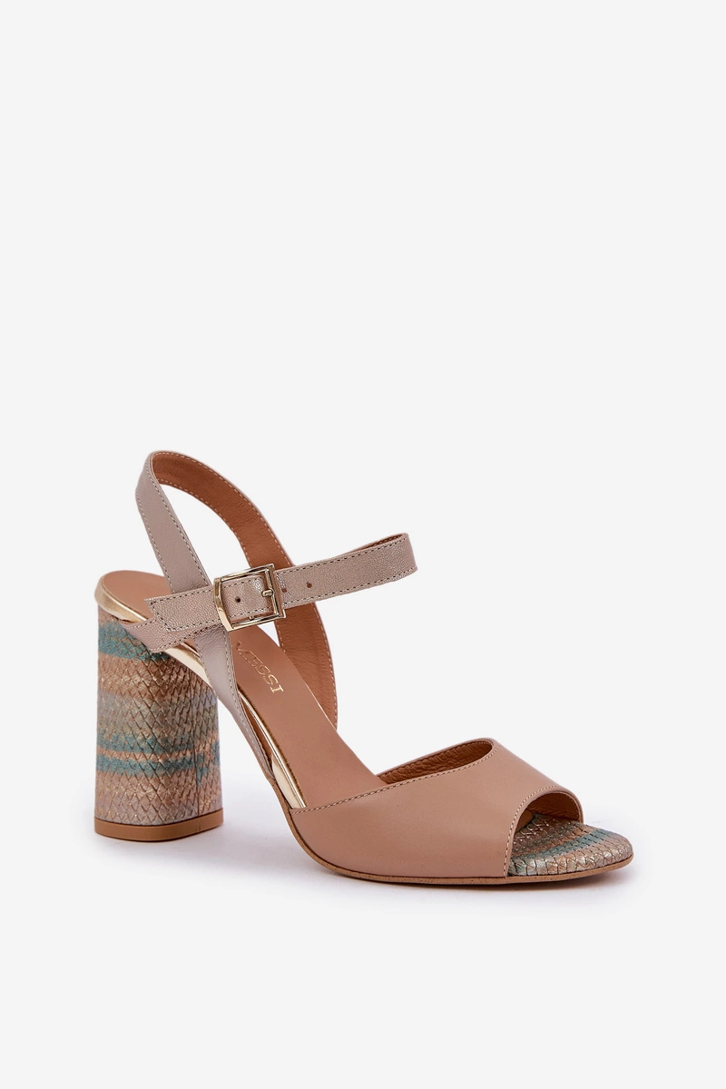 Skórzane Eleganckie Sandały Na Słupku Laura Messi 2136 Ciemnobeżowe