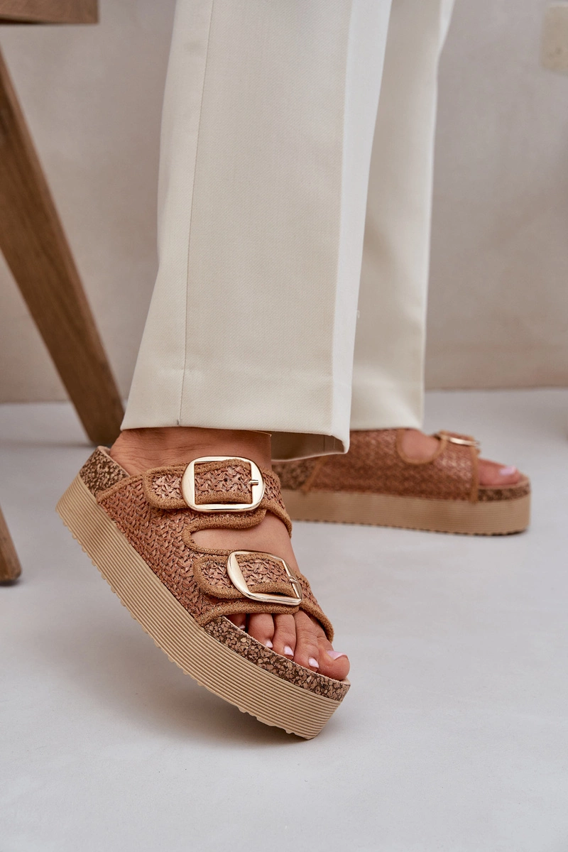 Klapki Z Plecionką I Klamrami Na Masywnej Platformie Camel Aralissea