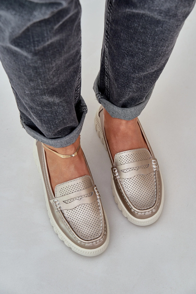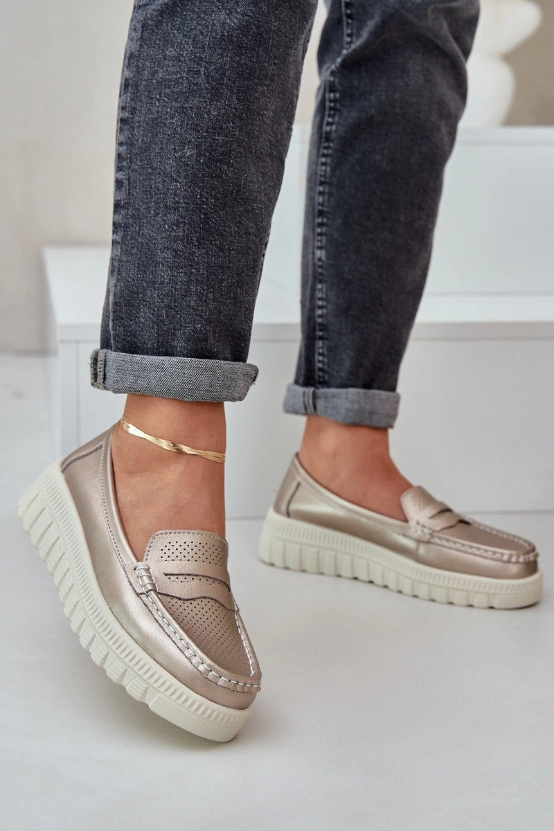 Skórzane Mokasyny Damskie Na Platformie I Koturnie Różowe Złoto Elanindel
